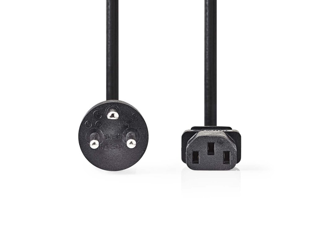 Nedis® napájecí kabel s konektory úhlová zástrčka typu D (DK) - IEC320 C13. Vhodný např. pro stolních PC, monitorů a dalších zařízení do zásuvky používané v Dánsku. Délka 2 m.