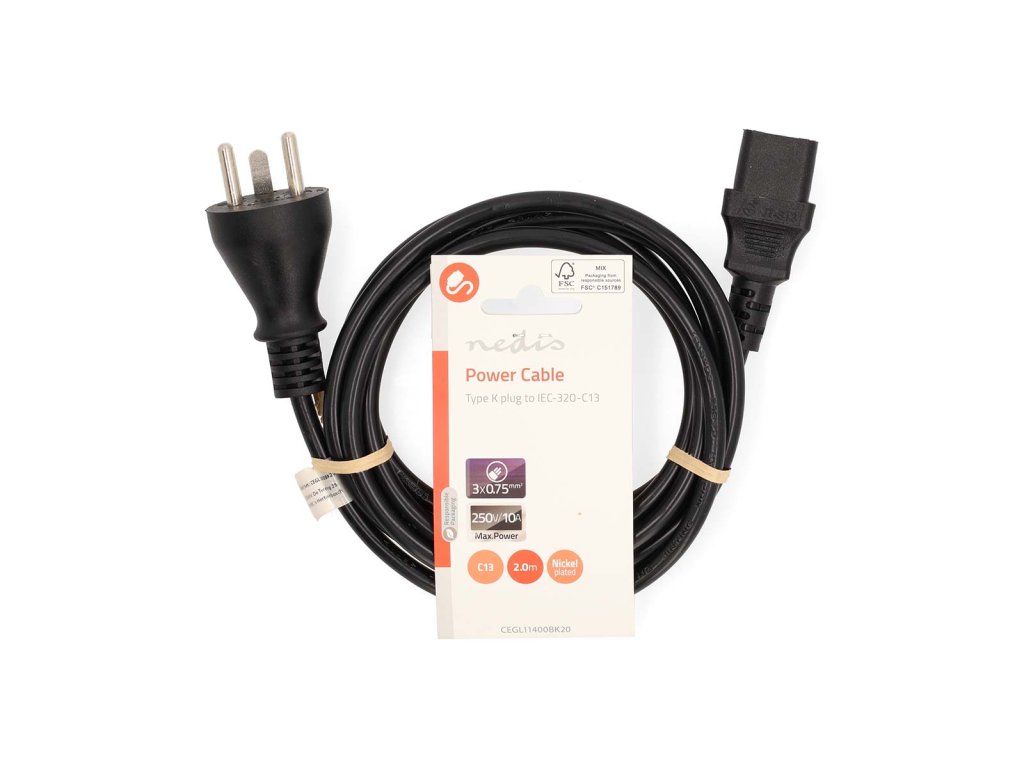 Nedis napájecí kabel zástrčka typ K (Dánsko) - IEC320-C13 černá, 2 m (CEGL11400BK20)