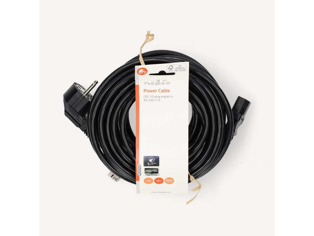 Nedis® napájecí kabel s konektory UNISCHUKO úhlová zástrčka - IEC-320-C13. Vhodný např. pro napájení stolních PC, monitorů a dalších zařízení. Délka 10 m.