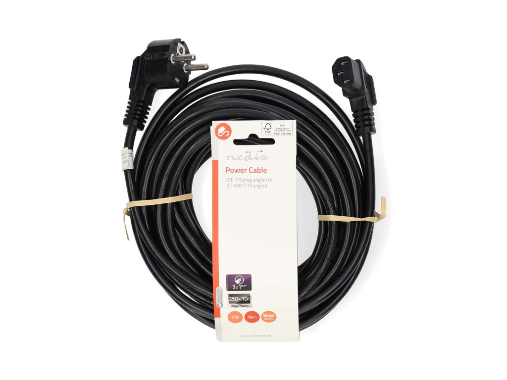 Nedis® napájecí kabel s konektory UNISCHUKO úhlová zástrčka - IEC-320-C13 úhlová zásuvka. Vhodný např. pro napájení stolních PC, monitorů a dalších zařízení. Délka 10 m.