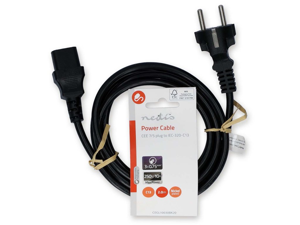 Nedis® napájecí kabel s konektory UNISCHUKO přímá zástrčka - IEC-320-C13. Vhodný např. pro napájení stolních PC, monitorů a dalších zařízení. Délka 2 m.