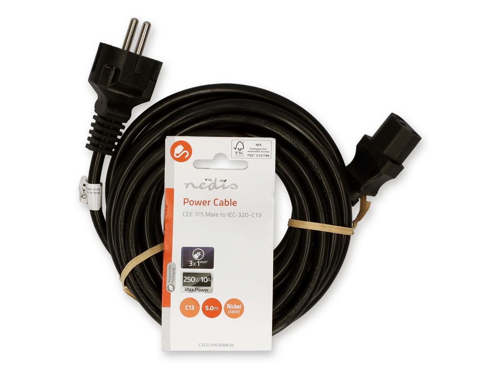 Nedis® napájecí kabel s konektory UNISCHUKO přímá zástrčka - IEC-320-C13. Vhodný např. pro napájení stolních PC, monitorů a dalších zařízení. Délka 5 m.