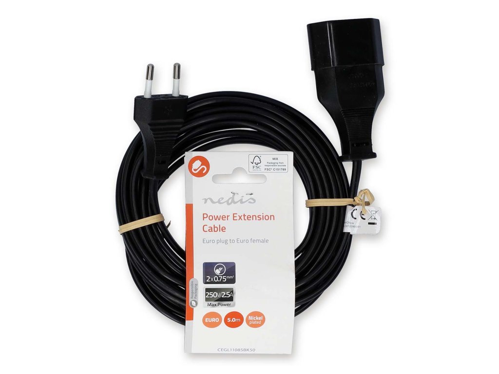 Nedis® napájecí kabel s konektory EURO CEE 7/16 zástrčka - EURO CEE 7/16 zásuvka. Vhodný např. k prodloužení stávajícího EURO kabelu Délka 5 m.