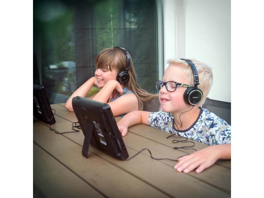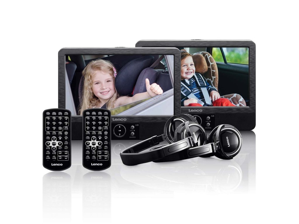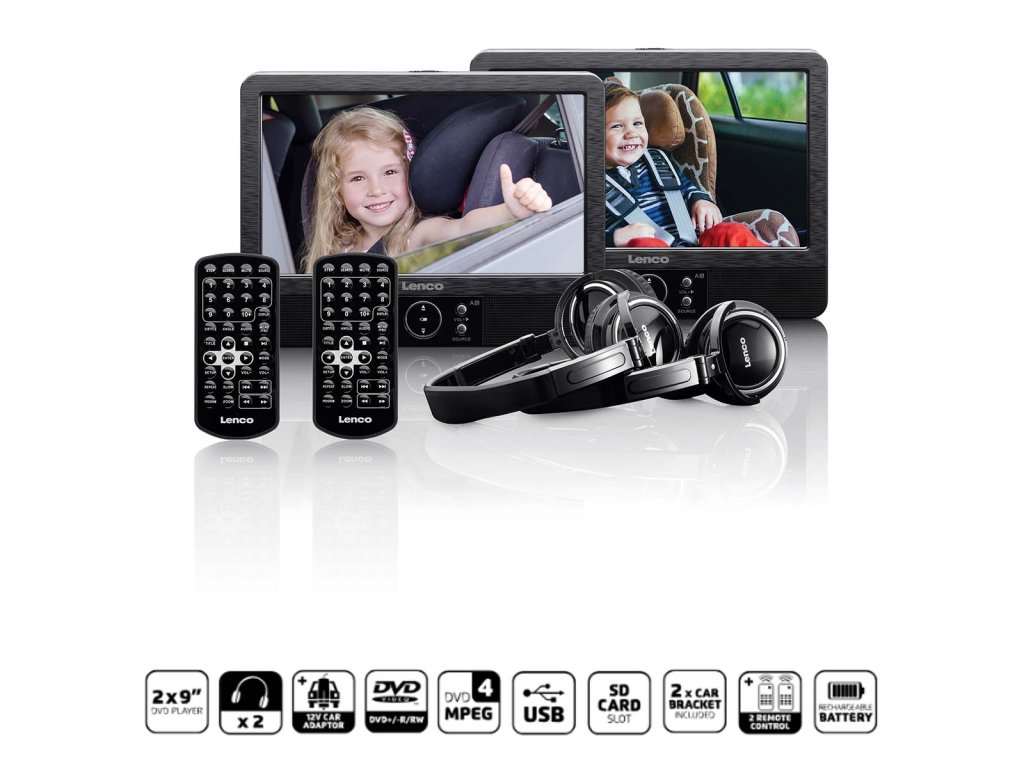 Lenco DVP-939 je sada 2 kompaktních přenosných přehrávačů DVD, každý s 9palcovou obrazovkou. Díky dvěma samostatným obrazovkám mohou vaše děti sledovat buď obě stejné věci, nebo si vybrat něco jiného. Jezdíte pravidelně s rodinou na několik dní autem nebo vlakem? Pokud ano, pak je Lenco DVP-939 ideálním společníkem na cesty. Děti mohou sledovat zábavné filmy celé hodiny, takže jim cesta nebude trvat dlouho. Do DVD přehrávače můžete také přes USB port přenést vlastní videa a fotografie a společně s rodinou si je prohlédnout. DVD přehrávač jednoduše připevněte na zadní stranu opěrky hlavy sedadla spolujezdce před vámi, abyste mohli pohodlně sledovat. Přehrávač Lenco DVP-939 podporuje formáty videa MPEG1, MPEG2 a MPEG4, zvukový formát MP3 a obrazový formát JPEG. Díky vestavěným 4wattovým reproduktorům je zvuk DVD přehrávače vynikající kvality. Přehrávač Lenco DVP-939 lze na cestách snadno nabíjet pomocí 12voltového zdroje napájení do auta.