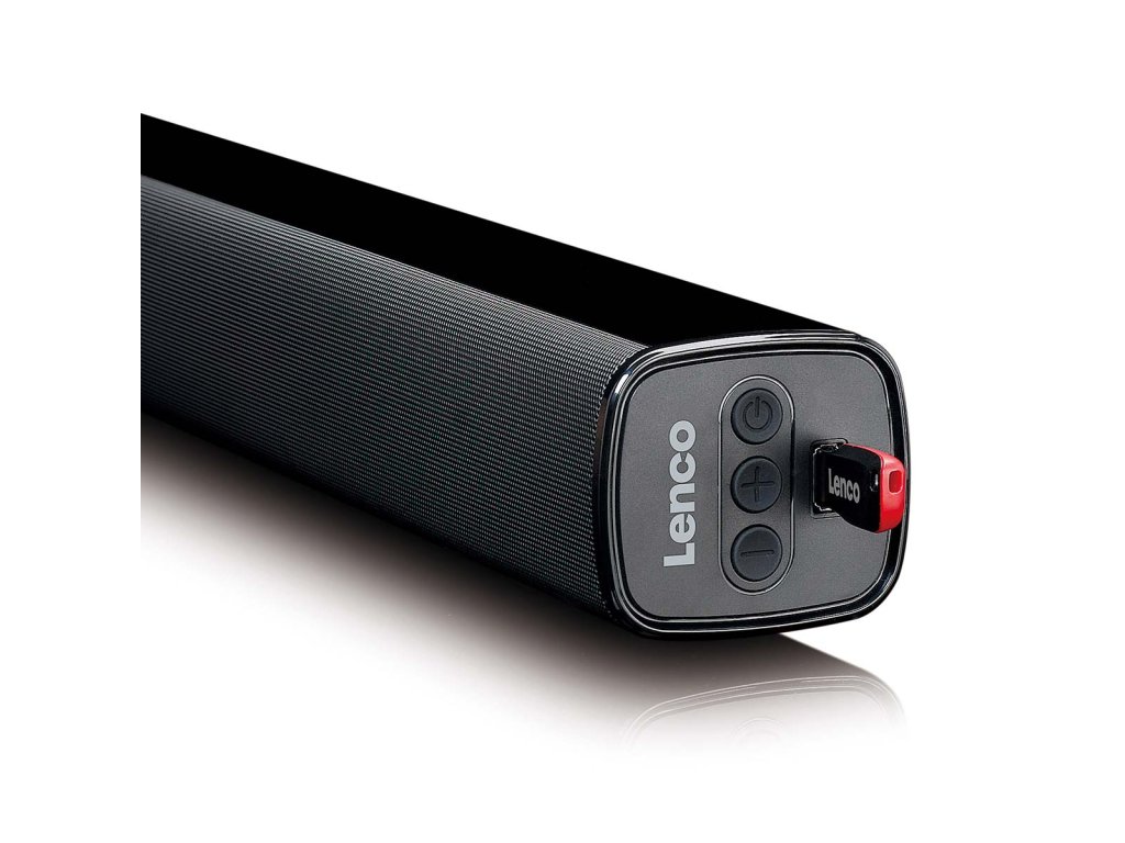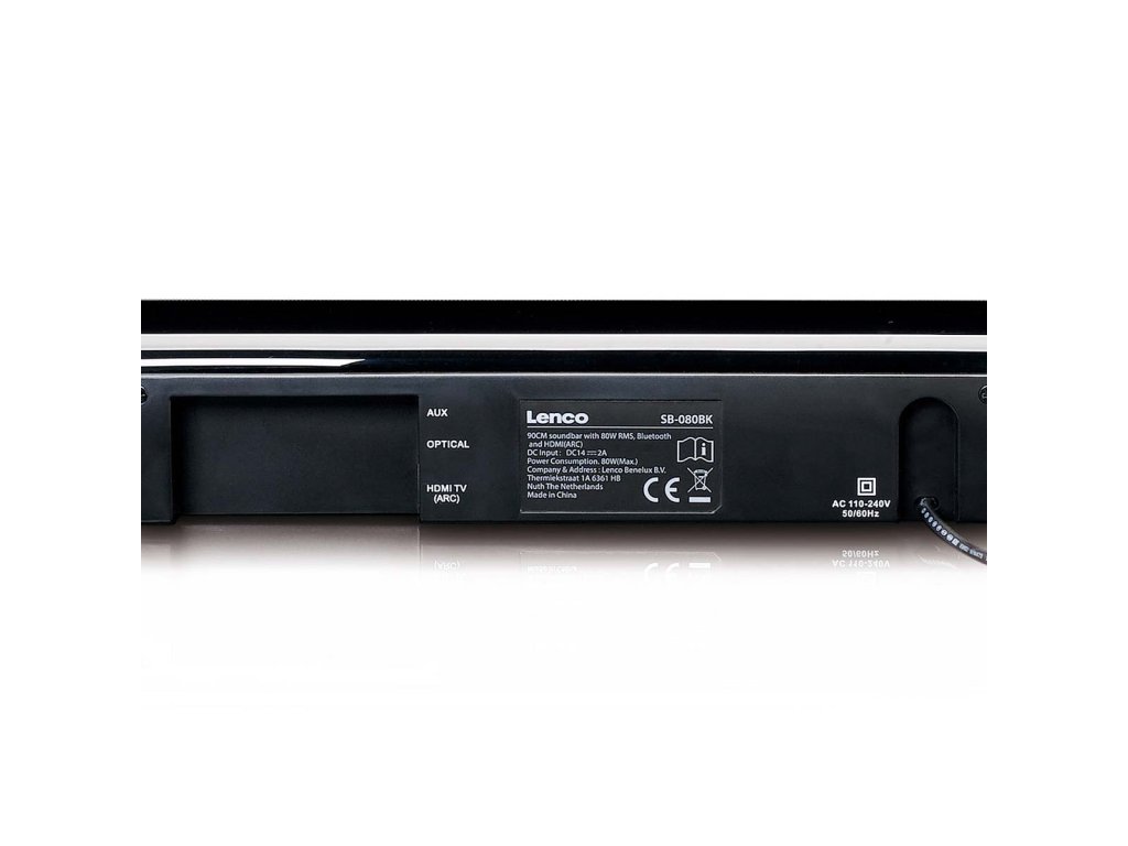Lenco SB-080 je soundbar o délce 90 cm s výkonem 80 W RMS, Bluetooth®, USB a vestavěným subwooferem s HDMI. S tímto výkonným soundbarem Lenco si vychutnáte filmy, videohry, seriály a televizní pořady jako nikdy předtím. Připadejte si jako v kině a buďte svědky těch největších filmových dobrodružství. Připojte svůj smartphone a tablet k tomuto soundbaru bezdrátově pomocí technologie Bluetooth® a nechte se ohromit filmovým zvukem vycházejícím ze zařízení Lenco SB-080. S jakými typy vstupních zdrojů lze reproduktor Lenco SB-080 kombinovat? Zařízení Lenco SB-080 můžete kombinovat s následujícími vstupními zdroji: • TV • DVD nebo Blue-Ray přehrávač • Konzole pro videohry • Streamovací služby, např. Spotify a Netflix • USB flash disk • Flash disk SD • Bluetooth® Se zařízením Lenco SB-080 můžete získat to nejlepší z digitálně nahraných filmů, ale také pokud jde o hudbu, doma natočená rodinná videa, služby streamování hudby a mnoho dalších zdrojů... Jaký je výstup soundbaru Lenco SB-080? Výkon soundbaru Lenco SB-080 je 2x 20 W + 40 W RMS, což znamená, že můžete vždy využívat výkonný zvuk, ať jste kdekoli ve své domácnosti, protože k poslechu hudby nemusíte nutně připojovat tento soundbar Lenco k televizoru. Perfektně také spolupracuje s chytrým telefonem nebo tabletem, takže můžete bezdrátově streamovat hudbu přes Bluetooth® na večírek nebo si odpočinout na gauči. Mohu reproduktor Lenco SB-080 připevnit také na zeď? Lenco SB-080 můžete také připevnit na stěnu pomocí přiložené montážní sady, takže k zavěšení tohoto soundbaru Lenco na stěnu není třeba kupovat další materiál.