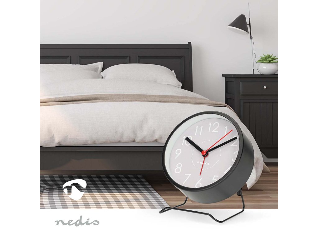 Tento Nedis budík nabízí nadčasový design v kombinaci se spolehlivou funkčností, takže je praktickým doplňkem každého nočního stolku, nočního stolku nebo kancelářského stolu. Díky klasickému kulatému tvaru a světle šedému analogovému ciferníku hodiny umožňují přehledné a snadné čtení času na první pohled. Hodiny jsou vybaveny vysoce přesným strojkem, který zajišťuje přesné měření času po celý den. Hodiny byly navrženy s ohledem na pohodlí a jsou vybaveny tichým strojem - to znamená, že žádné tikání neruší spánek, odpočinek ani soustředění. Nastavení času a budíku je jednoduché a přímočaré díky speciálním ladicím knoflíkům na zadní straně. Samostatný přepínač umožňuje uživatelům snadno aktivovat nebo deaktivovat budík podle potřeby, takže je uživatelsky přívětivý pro každodenní použití i cestování. Díky rozměrům pouhých 130 x 50 mm se tento budík dobře vejde do menších prostor, aniž by to bylo na úkor viditelnosti nebo funkčnosti. Díky svým kompaktním rozměrům je ideální do minimalistických interiérů, pokojů pro hosty nebo pracovních prostor, kde je málo místa. Budík je napájen jednou baterií AA (není součástí dodávky), takže umožňuje flexibilní umístění bez nutnosti blízké elektrické zásuvky.