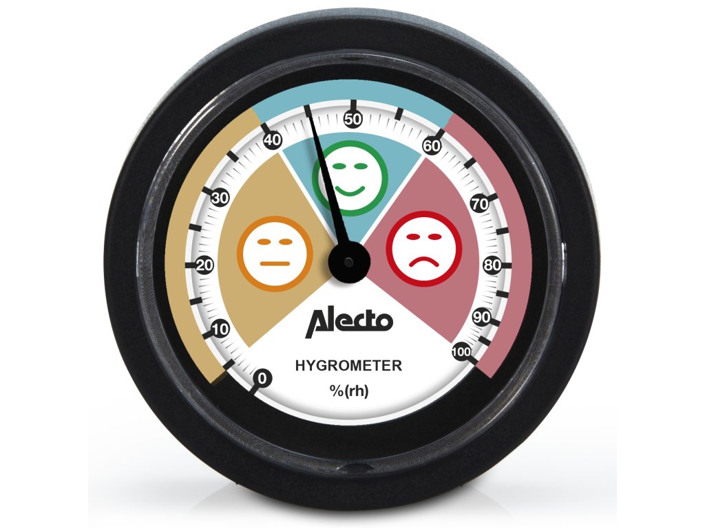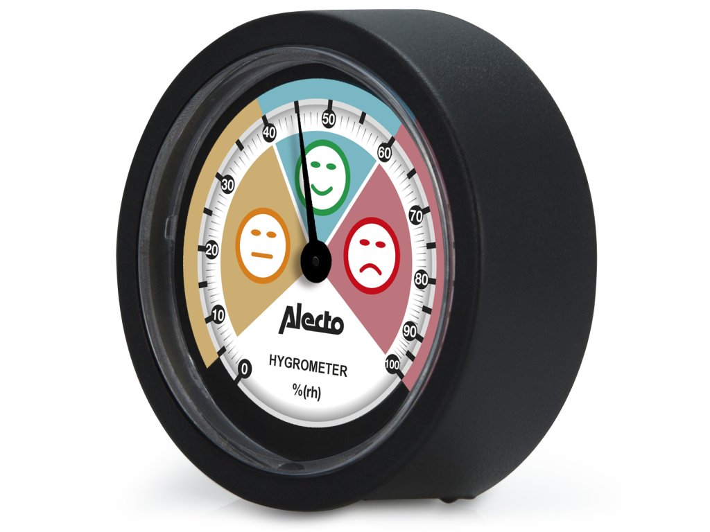 Analogový vlhkoměr WS-05 Analogový vlhkoměr Alecto WS-05 umožňuje snadné měření vlhkosti ve vaší domácnosti. Dobrá vlhkost je prospěšná pro vaše zdraví. Přístroj WS-05 je šetrný k životnímu prostředí, protože pracuje bez baterií. Je ideální pro použití v ložnici, obývacím pokoji, sklepě, zahradě, koupelně, zimní zahradě, skleníku, teráriu, kanceláři a dalších prostorách. Co je to vlhkoměr? Stejně jako teploměr udává teplotu, vlhkoměr měří relativní vlhkost. Můžete měřit vlhkost v každé místnosti zvlášť. Vlhkoměr vám umožní zjistit, zda je ve vzduchu příliš mnoho nebo příliš málo vlhkosti, a pokud ano, v jakém rozsahu. Vlhkoměr udává relativní vlhkost v procentech. Ideální je hodnota mezi 40 a 60 procenty. Co je relativní vlhkost? Relativní vlhkost je poměr mezi množstvím vodních par ve vzduchu a maximálním množstvím vlhkosti, které může vzduch při dané teplotě obsahovat. Pokud je vzduch při určité okolní teplotě zcela nasycen vodními parami, je relativní vlhkost 100 %. Pokud se pak množství vlhkosti ve vzduchu zvýší, začne kondenzovat. Vlhkost v domě! Každý den se v interiéru uvolňuje velké množství vody. Všichni lidé, zvířata a rostliny produkují vlhkost dýcháním a pocením. Kromě toho hrají roli i každodenní činnosti, jako je vaření, sprchování, mytí nádobí, praní a vytírání podlahy. Průměrná domácnost se 3-4 osobami uvolní denně v průměru 10 litrů vodních par. Kromě toho se vlhkost může do domu dostávat také přes půdu, sklep nebo půdní prostory. Zdravá vlhkost Ve vlhkých místnostech se daří plísním a roztočům, zatímco zdravá vlhkost je důležitá pro osoby s dýchacími potížemi. Pro dosažení zdravé úrovně vlhkosti je zásadní měřit vlhkost v různých místnostech. V závislosti na zjištěných hodnotách můžete místnost vytápět nebo větrat, abyste dosáhli nebo udrželi hodnotu v rozmezí 40-60 % vlhkosti. Specifikace výrobku: Vlhkost vzduchu v místnosti je určena k měření vlhkosti v místnosti: • Analogové měření relativní vlhkosti vzduchu • Rozsah měření: 0 - 100 % RELATIVNÍ VLHKOSTI • Barevný indikátor komfortní zóny • Vhodné pro vnitřní použití • Šetrný k životnímu prostředí, funguje bez baterií • Ideální pro použití v ložnici, obývacím pokoji, sklepě, na zahradě, v koupelně, zimní zahradě, skleníku, teráriu, kanceláři a jinde. • Kompaktní plastový kryt • Vhodné k umístění nebo zavěšení • Rozměry (ø x d) 60 x 20 mm / 2,4 x 0,8 palce Co je součástí balení? • Vlhkoměr