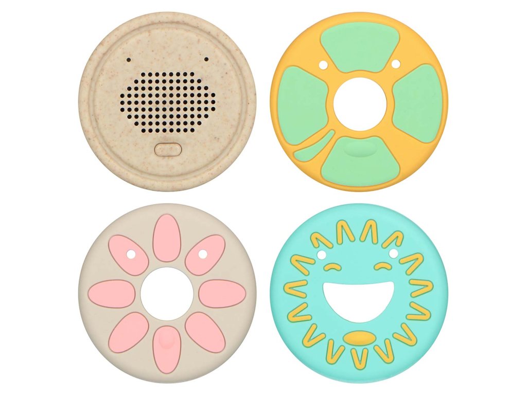 Alecto Baby HeeHee knoflík na povídání se dodává se třemi veselými silikonovými kryty (čtyřlístek, květina a sluníčko), z nichž jeden zakrývá knoflík. Díky přiloženému suchému zipu lze tlačítko snadno připevnit k měkké hračce a opět uvolnit. K dispozici je dostatečné množství suchých zipů pro připevnění knoflíku ke třem plyšovým hračkám. Stáhnete si a nainstalujete bezplatnou aplikaci HeeHee pro Android a iOS. Ujistěte se, že je zapnutá funkce Bluetooth® a připojte se k tlačítku. Zvolte požadovaný jazyk (holandština, angličtina, němčina, francouzština, španělština, dánština, norština a švédština) a sledujte, jak se zázrak odehrává.
