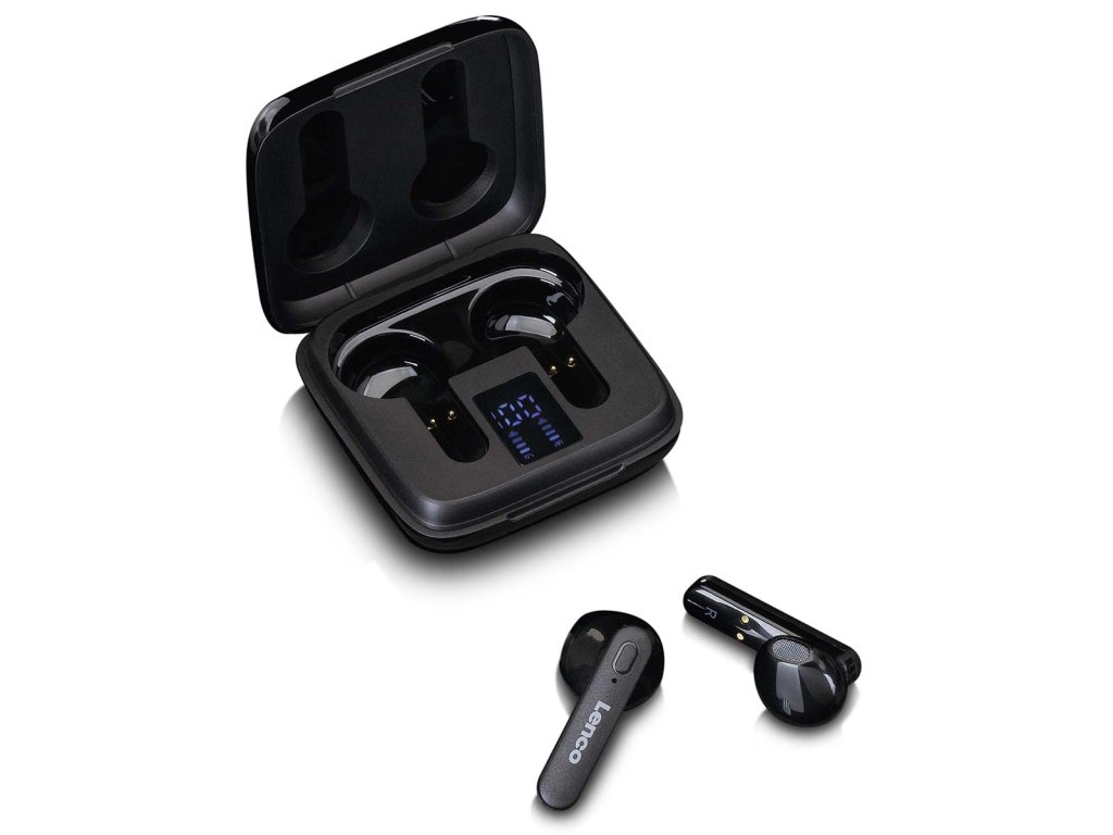 Poslouchejte svou oblíbenou hudbu s bezdrátovými sluchátky Lenco EPB-430BK. Tato sluchátka do uší True Wireless Stereo (TWS) vám umožní bezdrátově poslouchat tu nejlepší hudbu, audioknihy a podcasty až po dobu čtyř hodin. Sluchátka se nosí v uších. Tato bezdrátová sluchátka se dodávají s praktickým nabíjecím pouzdrem, díky kterému sluchátka s mikrofonem vydrží až 20 hodin. Displej na nabíjecím pouzdře vám přesně ukáže, na kolik procent je nabitý. Sluchátka jsou kompaktní, pohodlná a dokonale padnou do ucha každému. Umožňují zcela volný pohyb a zůstávají pevně na svém místě. Ať už jste na cestách, na dovolené nebo doma na pohovce.