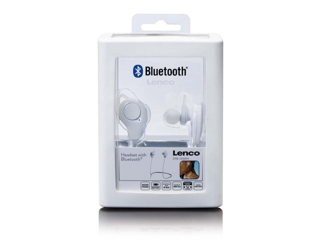 Poslouchejte svou oblíbenou hudbu ze smartphonu nebo tabletu pomocí sluchátek do uší Lenco EPB-015. Náhlavní souprava je bezdrátová jednotka Bluetooth®, takže ji můžete používat kdekoli a kdykoli. Černá barva se hodí ke každému oblečení. Cvičíte pravidelně? Sluchátka Lenco EPB-015 se k vám ráda přidají. Ať už chodíte běhat, cvičíte v posilovně nebo se účastníte týdenních lekcí Bootcampu, tato náhlavní souprava vás nikdy nebude omezovat v pohybu. Díky dosahu Bluetooth® 10 metrů a výdrži baterie 4 hodiny nebudete nikdy ochuzeni o motivační hudbu. Se sluchátky Lenco EPB-015 můžete dělat víc než jen poslouchat hudbu. Sluchátka jsou vybavena vestavěným mikrofonem, což znamená, že můžete vyřizovat i hovory hands-free. Při objednávce obdržíte nástavce do uší ve třech různých velikostech - S, M a L -, které vám zaručí dobré usazení v uších. Co když náhlavní soupravu nebudete nějakou dobu používat? V pohotovostním režimu má Lenco EPB-015 výdrž baterie více než 180 hodin.