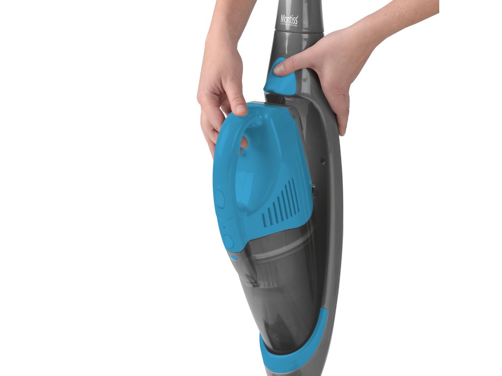 Akumulátorový dobíjecí vysavač 2 v 1 Montiss Blue CVC643 Chicago je ideální pro vysávání drobků po jídle vašich dětí nebo pro použití v místech s omezeným úložným prostorem. Akumulátorový, dobíjecí vysavač 2 v 1 Montiss CVC643 Chicago je mimořádně všestranný a má odnímatelný sáček na drobky, s jehož pomocí můžete vysát drobky nebo dokonce tekutiny, takže pokud vám upadne sklenice s vodou, můžete ji jednoduše vysát. sací hubice tyčového a ručního vysavače má elektricky poháněný turbokartáč pro různé typy podlah. Tímto způsobem se uvolňuje prach a nečistoty, které lze snadno vysát. Akumulátorový vysavač 2 v 1Montiss CVC643 Chicagoje vybaven HEPA filtrem, který zajišťuje, že je vysáván i jemný prach, který je shromažďován v nádobě na nečistoty. S tímto multifunkčním přístrojem vyčistíte vše od podlahy a nábytku až po auto. Akumulátorový vysavač 2 v 1Montiss CVC643 Chicagase stane vaším novým nejlepším přítelem v domácnosti i v jejím okolí. tyčový a ruční vysavač má dobíjecí baterii, takže máte při vysávání velkou volnost pohybu. Už nikdy také nebudete muset hledat správné sáčky na prach, protože přístroj má zásobník na nečistoty o objemu 300 milimetrů, který se snadno vyprazdňuje a čistí díky omyvatelnému HEPA filtru. Dobíjecí vysavač 2 v 1 CVC643 Chicago je tak během okamžiku opět připraven k použití.