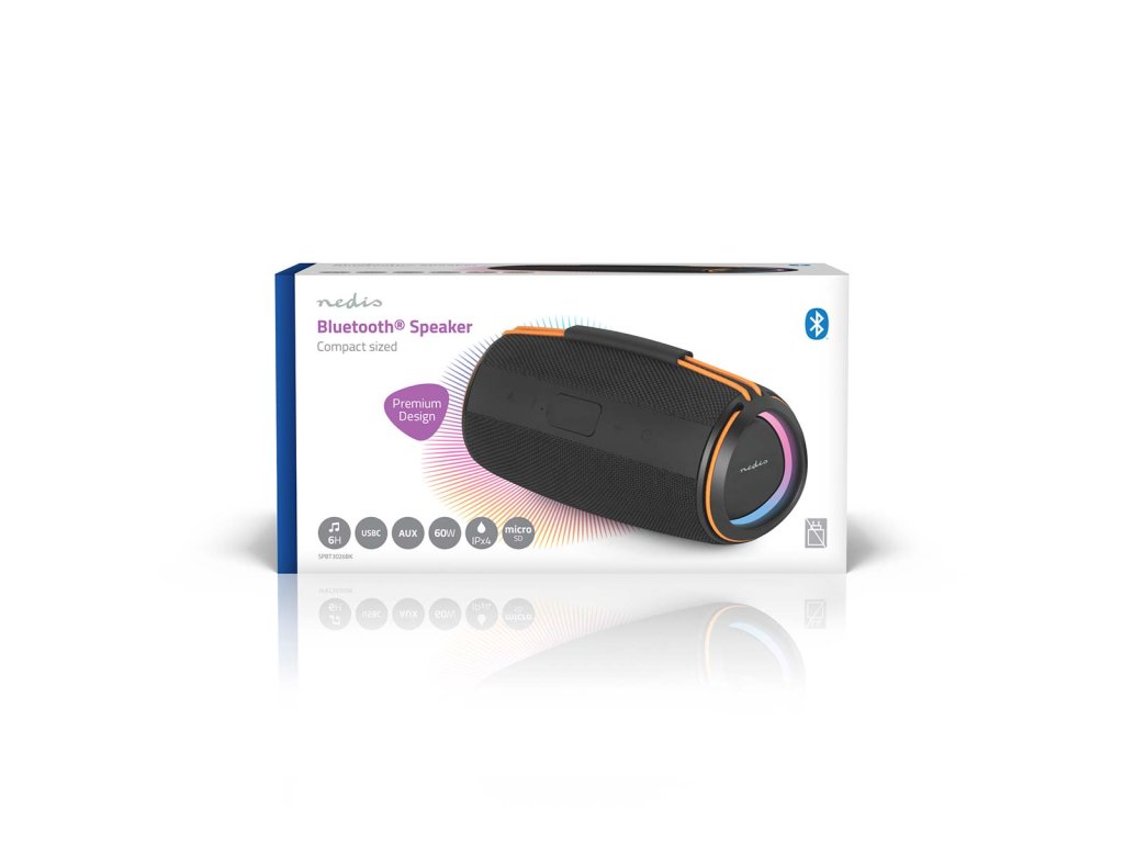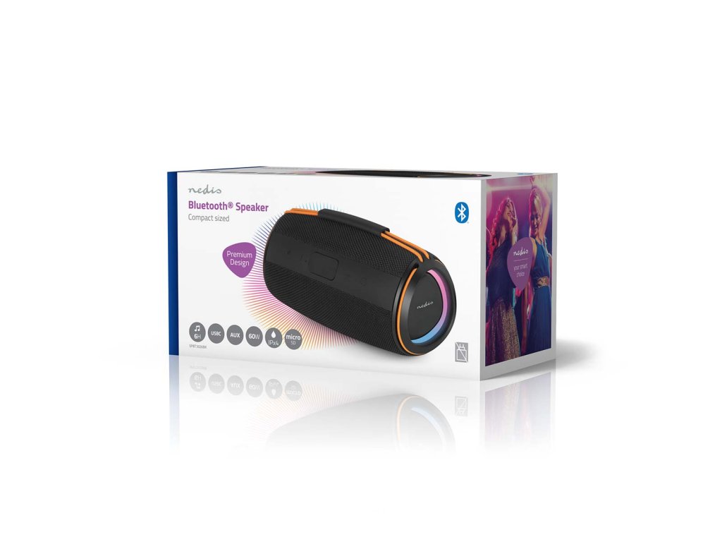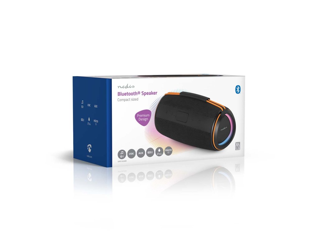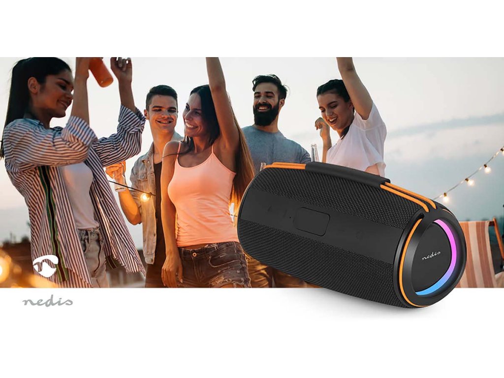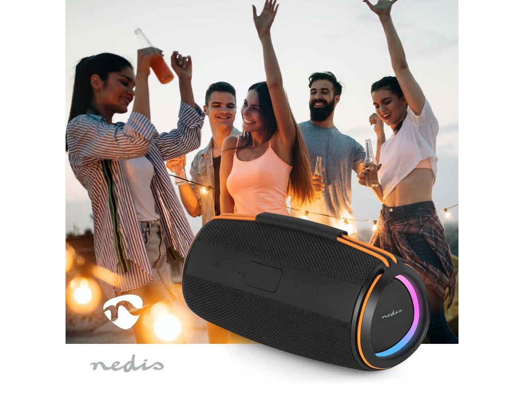 Nedis Stylish Bluetooth® 60 W Speaker je určen pro ty, kteří chtějí silný zvukový výkon, aniž by museli slevit ze svého stylu nebo přenosnosti. Jeho povrchová úprava z tkané látky mu dodává prvotřídní a moderní vzhled, zatímco barevná elastická rukojeť mu dodává praktický vzhled, díky němuž jej lze snadno přenášet kamkoli. Navzdory svým kompaktním rozměrům poskytuje působivý zvuk o výkonu 40 W, který oživí hudbu v interiéru i exteriéru. Díky bezdrátové technologii Bluetooth® 5.4 je připojení bezproblémové a spolehlivé. Stabilní připojení bez rušení funguje bez problémů s chytrými telefony, tablety nebo notebooky. Po prvním nastavení se reproduktor automaticky znovu připojí, takže si uživatelé mohou vychutnat okamžité přehrávání hudby bez dalších kroků. Pro ještě větší zvukový zážitek umožňuje funkce True Wireless Stereo (TWS) spárovat dva reproduktory dohromady, čímž vznikne širší zvuková scéna a zdvojnásobí se výstupní výkon - ideální pro větší místnosti nebo venkovní setkání. Reproduktor Nedis Bluetooth® 40 W je navržen s ohledem na výkon i pohodlí. Intuitivní ovládací tlačítka umožňují přehrávání, pozastavení nebo přeskakování skladeb přímo ze zařízení, zatímco integrovaný světelný efekt LED dodává atmosféru a zlepšuje náladu - ať už při klidných večerech nebo živých večírcích. Kromě streamování přes Bluetooth nabízí tento bezdrátový reproduktor více možností přehrávání. Je vybaven portem USB i slotem pro kartu microSD s podporou až 32 GB, což uživatelům poskytuje možnost přehrávat přímo vlastní hudební soubory. Nově přidaný port AUX-IN umožňuje připojit externí zařízení pomocí kabelu, což poskytuje ještě větší všestrannost pro různé preference poslechu.