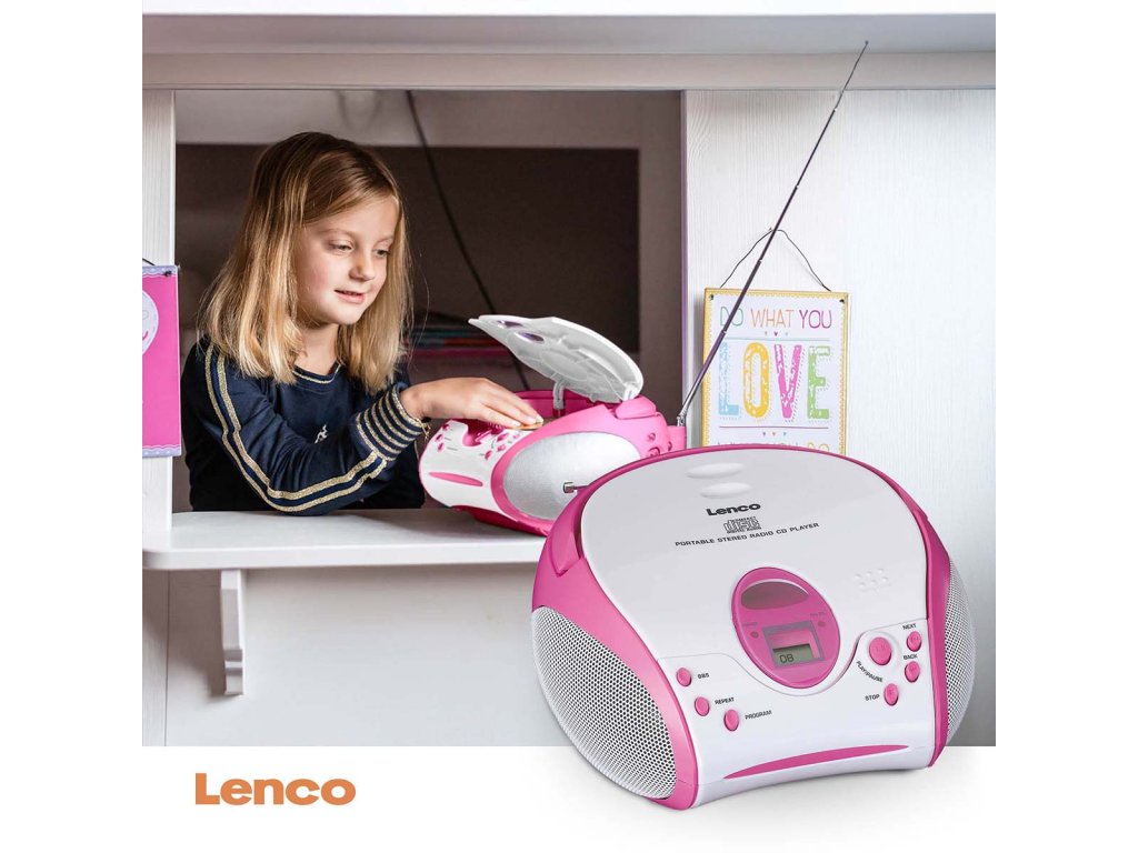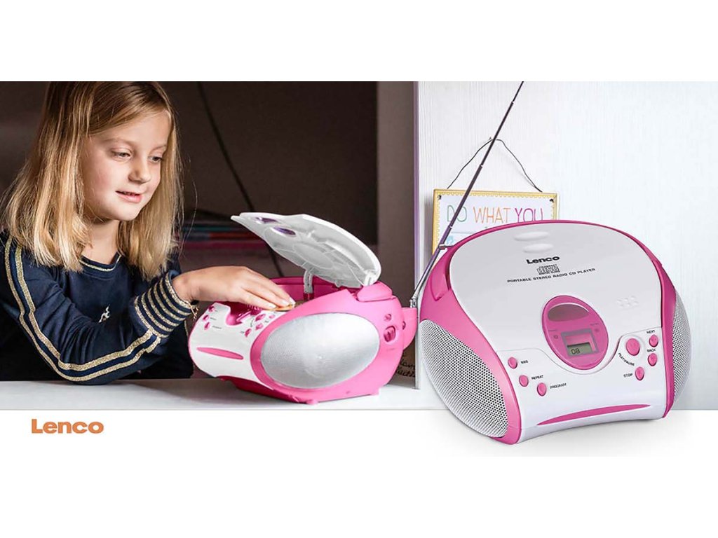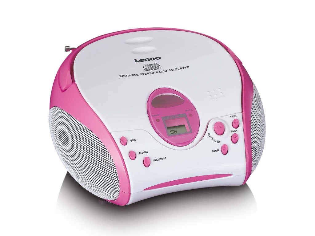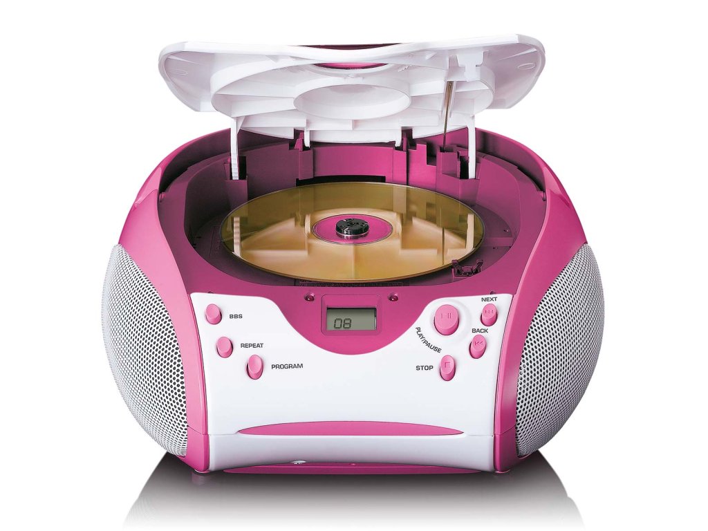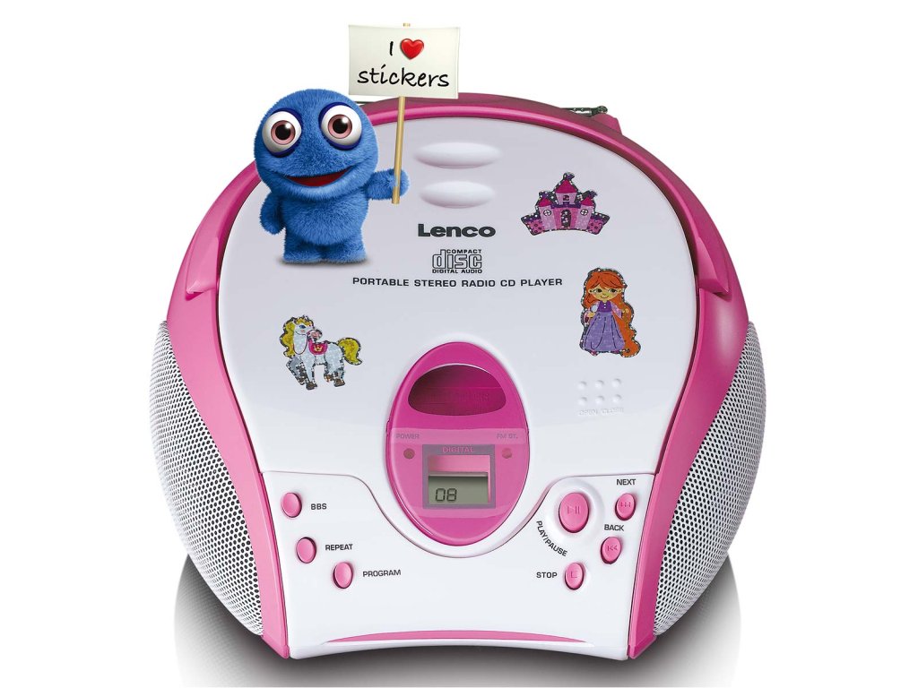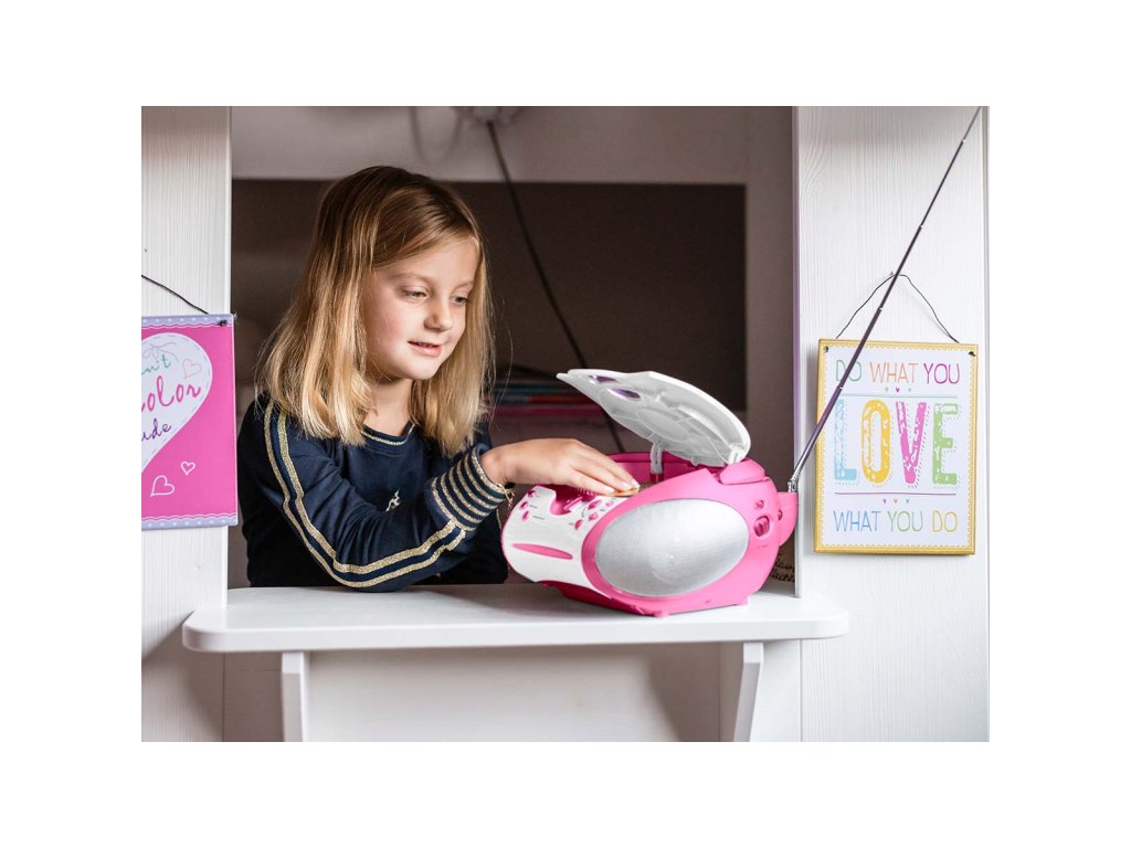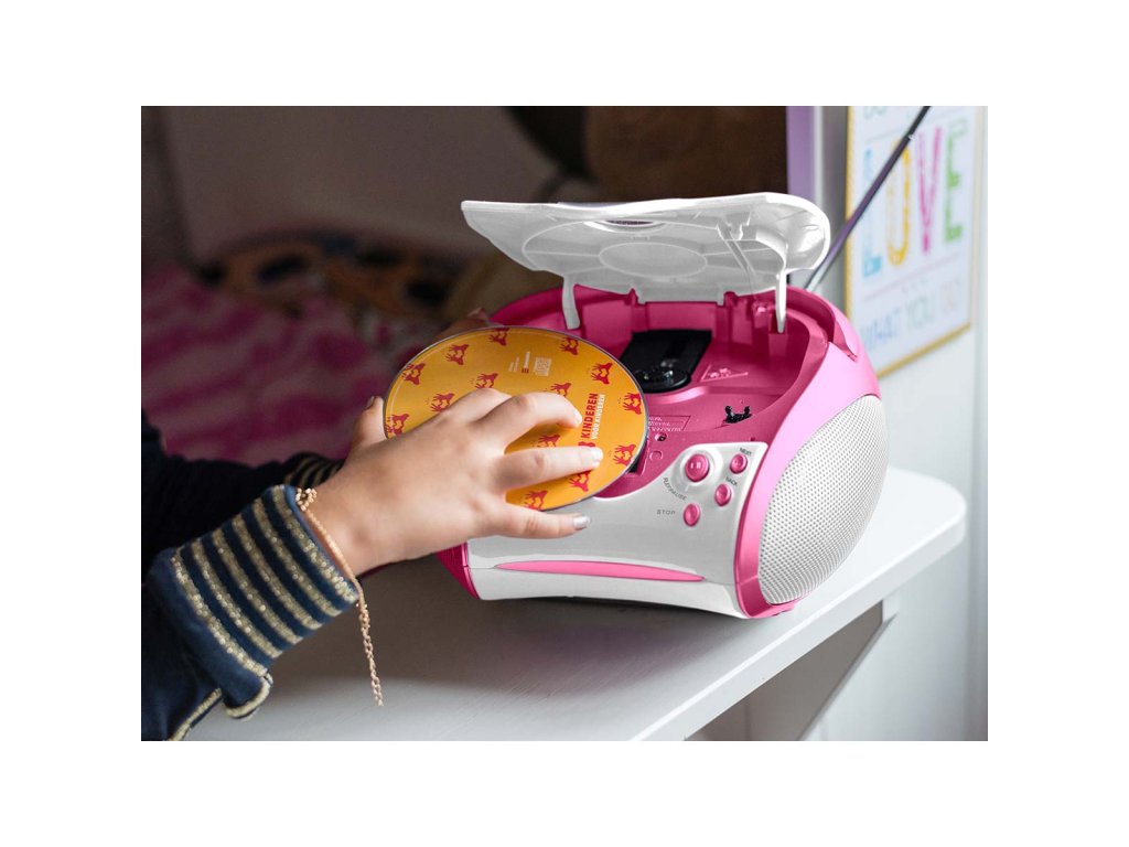 Boombox s přehrávačem CD FM rádiem a samolepkami Růžová barva