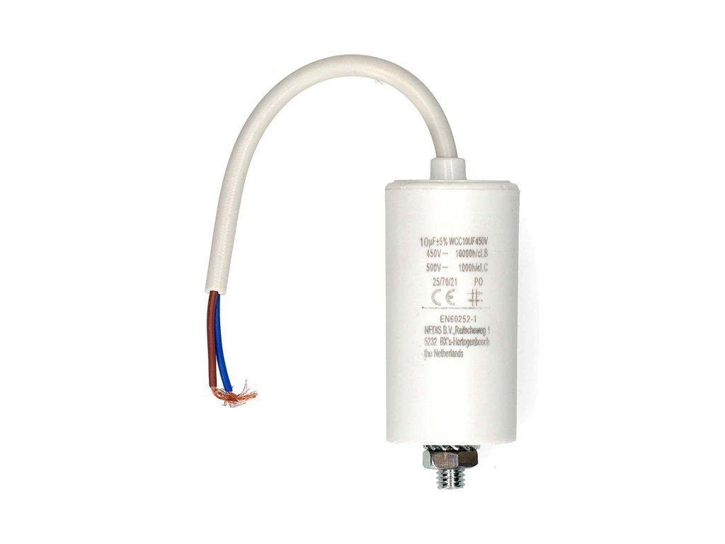 • Capacitor: 10 uF • Voltage: 450Vac • Cable connection • Dimension: Ø 35 x 69 mm