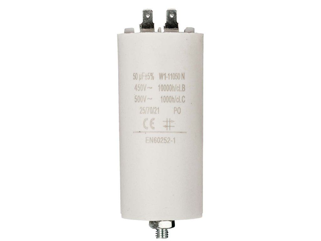 • Capacitor: 50 uF • Voltage: 450Vac • Faston connection • Dimension: Ø 50 x 107 mm