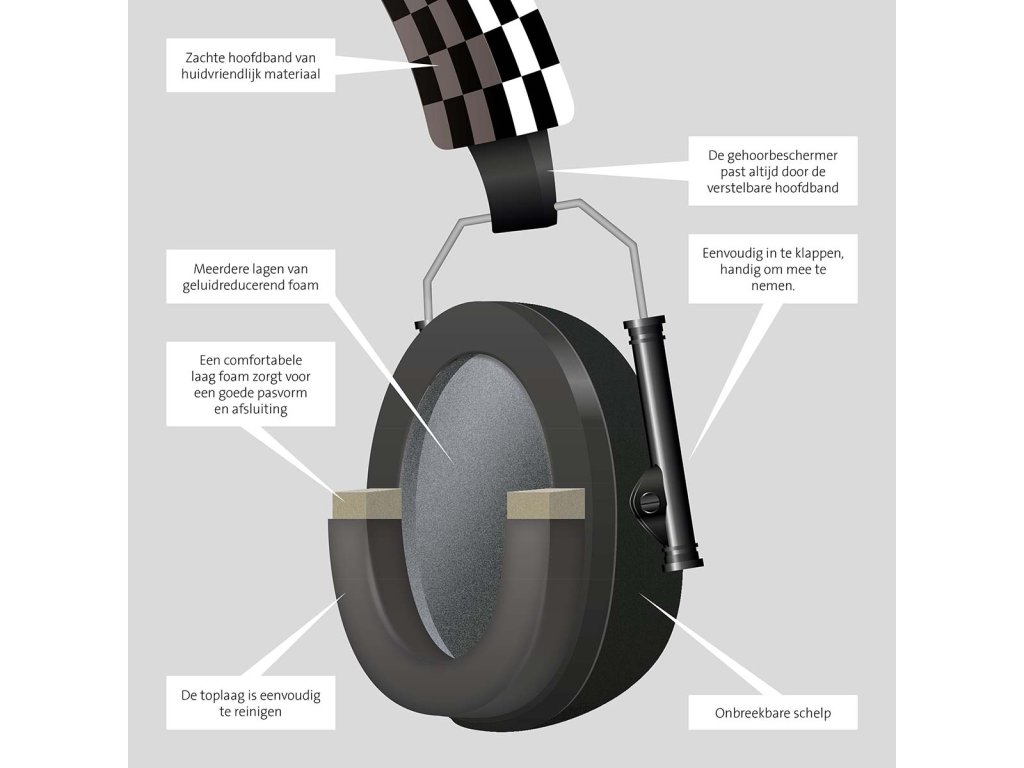 Chránič sluchu, známý také jako chránič sluchu, je lehký a skladný, a proto se snadno přenáší (ideální na akce a festivaly).