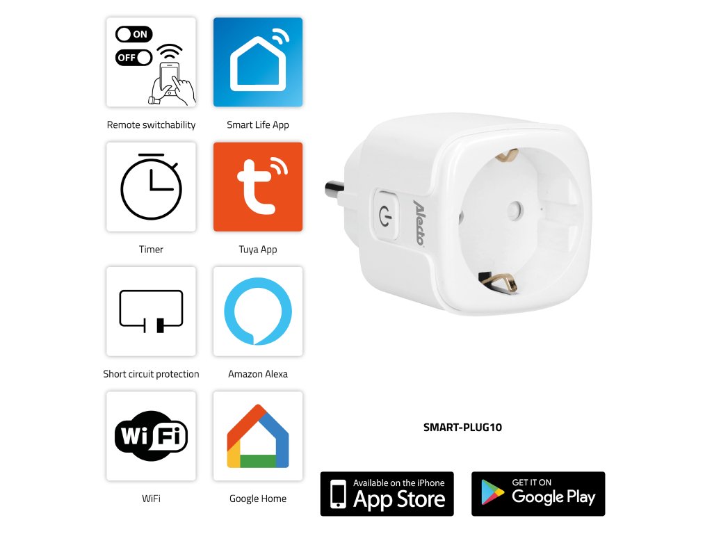 Sada 4 chytrých zásuvek Wi-Fi s monitorem spotřeby energie • 4 kusy Alecto SMART-PLUG10 Chytrá Wi-Fi zásuvka s napájením z elektrické sítě • Ovládání přes Tuya, Google Home nebo Alexa • Snadná a rychlá instalace • Připojení přes Wi-Fi • Neomezený nastavitelný časový plán • Ovládání přes IOS, Android, Windows • Elegantní a praktický design • Ochrana proti zkratu 230 V Chytřejší bydlení Udělejte své bydlení chytřejším a zvolte si pohodlí chytré zásuvky Wi-Fi SMART-PLUG10. Zásuvka Smart Wi-Fi Plug představuje fantastický způsob, jak vytvořit chytrý obytný prostor. Je šetrnější k elektrickým spotřebičům a může vám zajistit nižší účet za elektřinu tím, že v případě potřeby vypne nepoužívané spotřebiče. Připojené zařízení můžete jednoduše zapnout nebo vypnout pomocí telefonu, tabletu nebo počítače kdekoli na světě. Funkce časovače Vytvořte si časový rozvrh a vypněte v noci ohřívač vody nebo automaticky zapněte zahradní osvětlení, když se setmí. Ovládání zásuvky Smart Wi-Fi Plug je snadné pomocí aplikací Alexa a Google Home, které vám umožní ovládat zásuvku Smart Wi-Fi Plug hlasem! Chytrý design Existuje spousta možností a aplikací, na které je třeba myslet. Díky svému elegantnímu a praktickému designu se chytrá zásuvka hodí do každé místnosti. Instalace chytré zásuvky zabere jen několik minut. Pro jednotné přihlášení a používání prostřednictvím domácího připojení Wi-Fi není potřeba žádná brána ani můstek. Stručně řečeno, tato zásuvka je "chytrá" v každém ohledu! Co je součástí balení? • Chytrá zástrčka 4x • Manuál NL / EN / DE / FR / ES / IT / PT / PL / SE / RO • Univerzální příručka