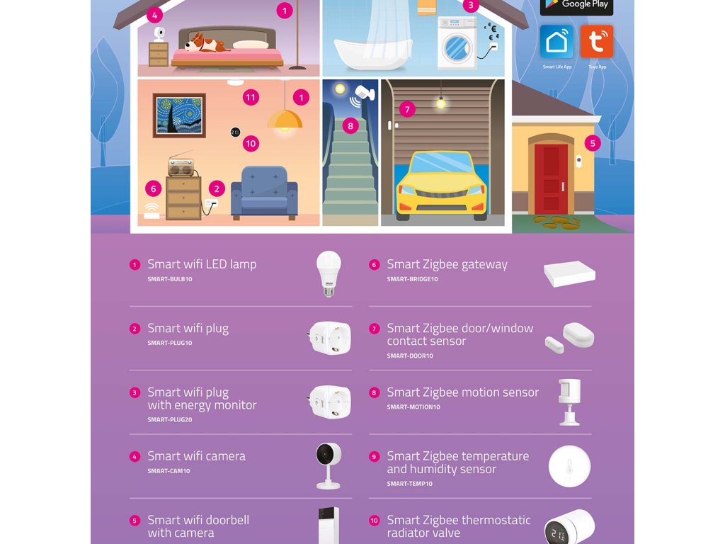 Pomocí Alecto SMART-RING20 zjistíte, kdo je u dveří, aniž byste je museli otevírat. S tímto chytrým zvonkem Wifi s kamerou uvidíte, kdo zvoní u dveří, ať jste kdekoli. Okamžitě obdržíte push oznámení z chytrého telefonu a/nebo tabletu prostřednictvím bezplatné aplikace Smart Life. I když nejste doma, můžete s osobou u dveří prostřednictvím této aplikace hovořit. Videozvonek Alecto SMART-RING20 má dobrou kvalitu obrazu a zvuku. Díky infračervenému nočnímu osvětlení můžete i ve tmě zjistit, kdo je u vašich dveří. Když zazvoníte, zvonek se rozsvítí, takže tuto osobu vidíte velmi dobře. Zvonek je odolný proti prachu a stříkající vodě (IP54). Má možnost připojení karty SD (až 128 GB). Všechny videozáznamy s pohybem se automaticky ukládají na kartu SD. Ta je zdarma a neplatí se za ni žádné předplatné. Bezdrátový zvonek funguje na WiFi a lze jej bez problémů připojit přímo k (domácí) síti. Není k tomu zapotřebí žádný most ani brána. Zvonek je propojen s bezplatnou aplikací Smart Life společnosti Tuya, kterou lze zdarma stáhnout pro všechna zařízení se systémy iOS a Android. V této aplikaci lze spravovat všechny produkty Alecto Smart Life. Zvonek SMART lze například použít i ve scénářích domácí automatizace. Díky tomu můžete například nastavit, aby lampa blikala, když zazvoní zvonek, a vy jste si tak mohli být opravdu jisti, že u vašich dveří někdo je. Zvonek Alecto SMART-RING20 můžete nainstalovat jako nový zvonek nebo jej připojit ke stávajícímu zvonku. Kamera funguje na stávajícím zvonku s transformátorem 8-24 V. Lze ji také rozšířit o bezdrátový zvonek SMART-RING-BELL od společnosti Alecto. Vzhledem k tomu, že zvonek je dodáván s rohovým držákem, lze jej pomocí dodaného montážního materiálu umístit pod úhlem. Zorný úhel je 55 stupňů vertikálně a 100 stupňů horizontálně.