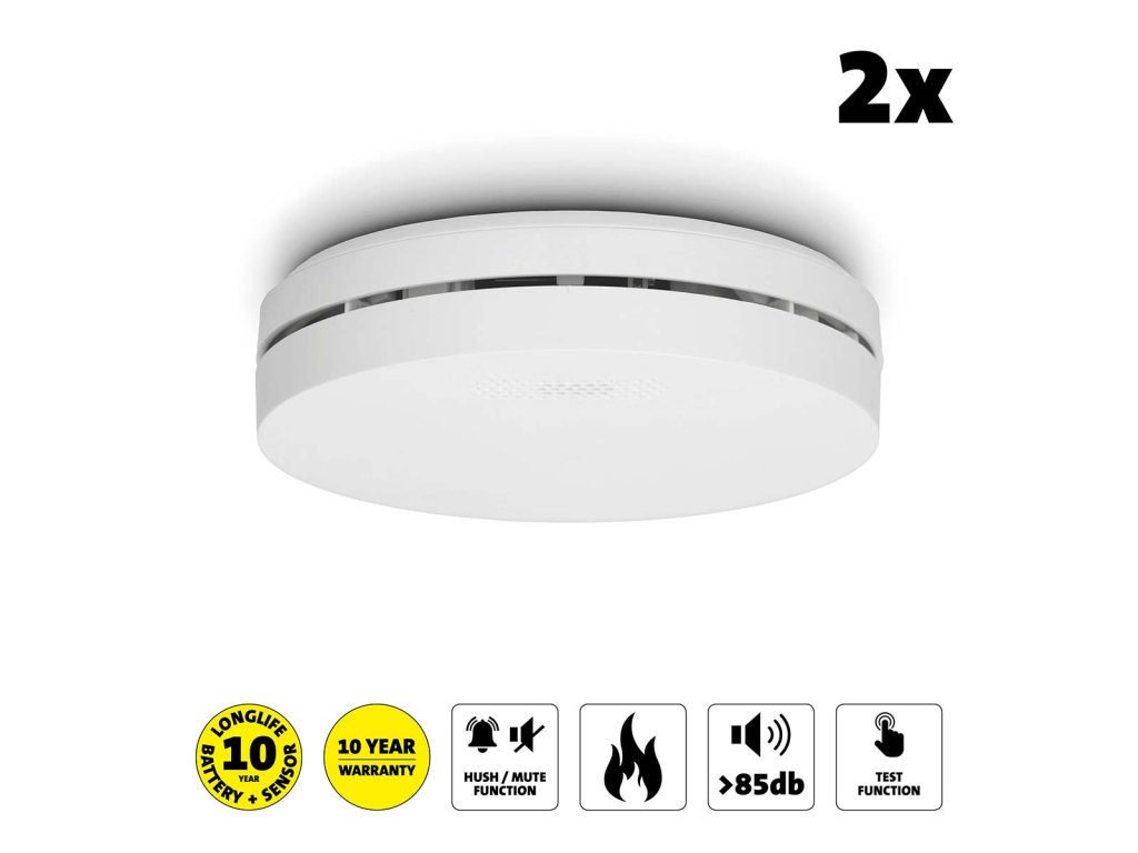 Tento detektor kouře s elegantním designem má lithiovou baterii, která vydrží nejméně 10 let a je energeticky úsporný a spolehlivý. Vysoce kvalitní optický senzor má také životnost 10 let, takže máte jistotu, že po dobu následujících 10 let budete okamžitě alarmováni, pokud se v domě objeví kouř nebo oheň. Na tento produkt se vztahuje záruka 10 let. Pokud je baterie téměř vybitá, zobrazí se varování.