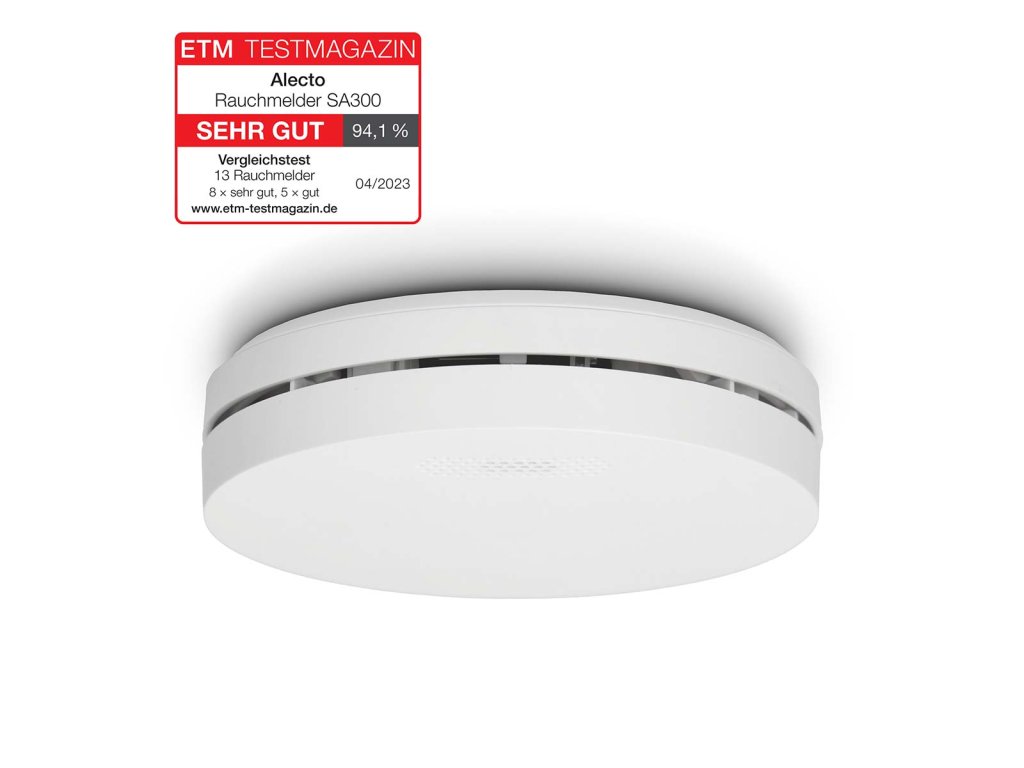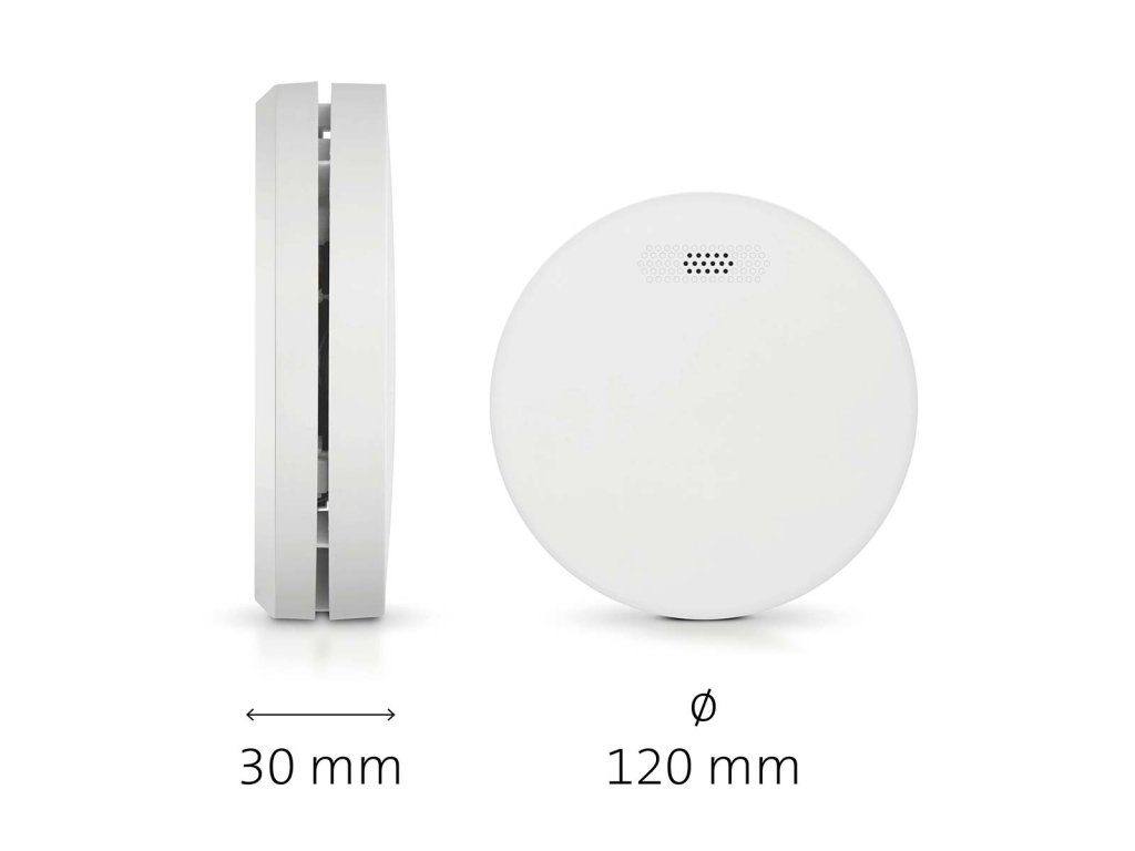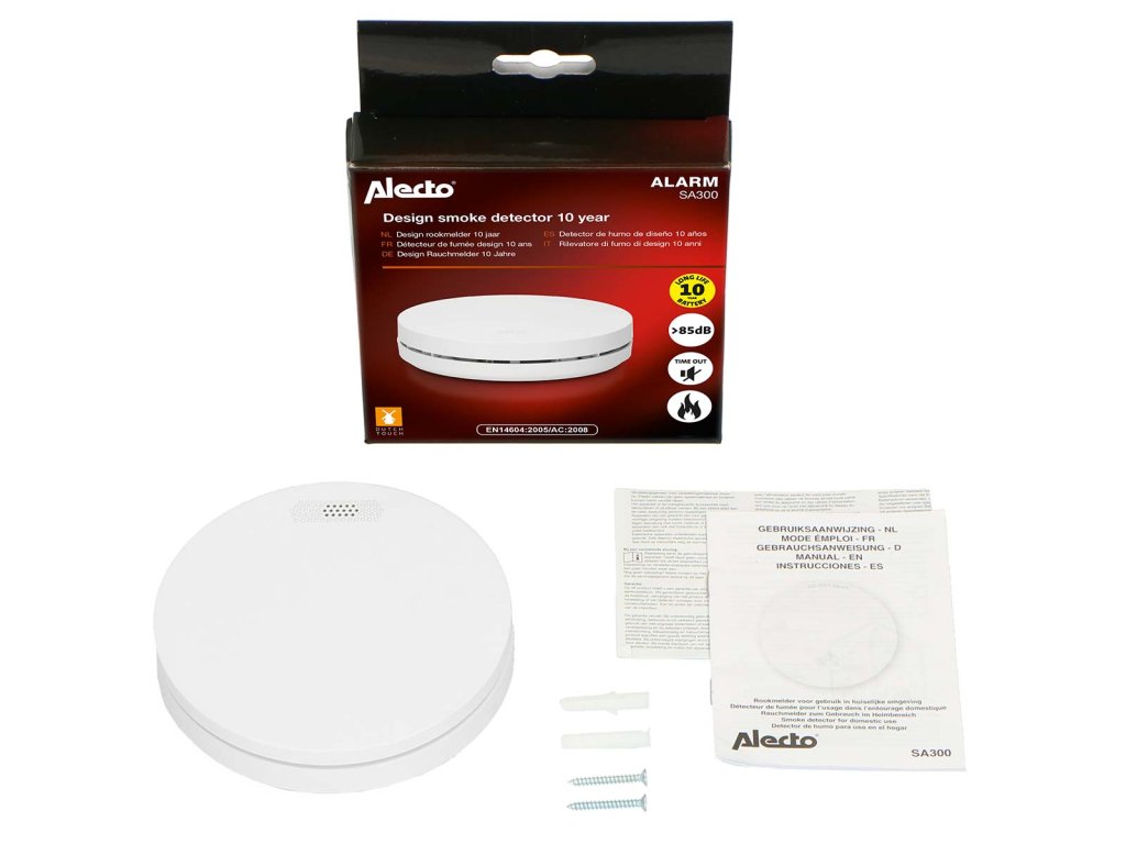 Detektor kouře Alecto SA300 je velmi tenký a má stylový, diskrétní design. S tloušťkou 3 cm se tento kompaktní detektor kouře snadno vejde do každého interiéru. Pokud se v domě vyskytne kouř nebo požár, detektor velmi rychle spustí poplach. Hlasitý alarm, který určitě uslyšíte i ve spánku. Životnost 10 let Tento elegantní designový detektor kouře je vybaven lithiovou baterií, která vydrží nejméně 10 let a je energeticky účinná a spolehlivá. Kvalitní optický senzor má rovněž životnost 10 let, takže máte jistotu, že po dobu dalších 10 let budete okamžitě upozorněni, pokud se v domě objeví kouř nebo požár. Na tento výrobek se vztahuje 10letá záruka. Pokud je baterie téměř vybitá, obdržíte varování. Velké tlačítko pro houkání, testování a resetování Alecto SA300 je vybaven velkým, ale diskrétním tlačítkem hush, test a reset. Po celé ploše je velké tlačítko, které můžete snadno stisknout špičkou násady od koštěte. Už nemusíte stát na schodišti, abyste otestovali detektor, vypnuli detektor nebo alarm. • Tlačítko hush se používá, když chcete dočasně zastavit spuštění alarmu. • Doporučuje se pravidelně testovat detektory kouře. Testovací tlačítko stiskněte vždy alespoň jednou za měsíc nebo po určité době nepřítomnosti. Snadná instalace Tento kompaktní detektor kouře od společnosti Alecto je vhodný pro montáž na stěnu i strop a snadno se instaluje na požadované místo. Aby to bylo ještě snazší, dodává se s montážní základnou, šrouby a hmoždinkami. Jakmile detektor kouře nacvaknete na montážní desku, detektor se aktivuje. Nejlepší místa pro umístění detektorů kouře jsou chodba nebo schodiště v patře. Právě tudy často vedou únikové cesty, pokud v domě vypukne požár. Pokud chcete dosáhnout maximální bezpečnosti, nainstalujte detektor kouře do každé místnosti, kde by mohl vzniknout požár. Hlásič SA300 je k dispozici také v sadě dvou hlásičů kouře SA300 DUO. Důležité funkce • Rychlé varování v případě kouře a požáru • Ultratenký detektor kouře • Stylový, kompaktní a diskrétní design • Životnost 10 let bez výměny baterií • Na tento výrobek se vztahuje 10letá záruka • Vestavěná ekologická lithiová baterie a optický senzor • Tlačítko Hush, test a resetování Technické vlastnosti • Vysoká kvalita: Splňuje normu EN14604:2005/AC:2008. • Upozornění na slabou baterii • Mimořádně hlasitý alarm >85 dB • Rozměry (v x ø) 30 x 120 mm Co je součástí balení? • Detektor kouře s vestavěnou lithiovou baterií na 10 let • Montážní základna • Montážní materiál (2x šroub se zástrčkou) • Návod k použití NL / EN / DE / FR / ES • Univerzální návod