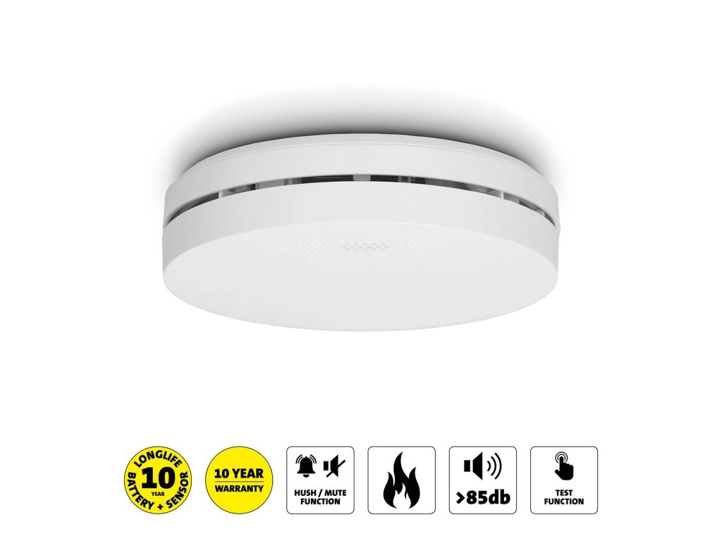 Designový detektor kouře s baterií na 10 let Bílý