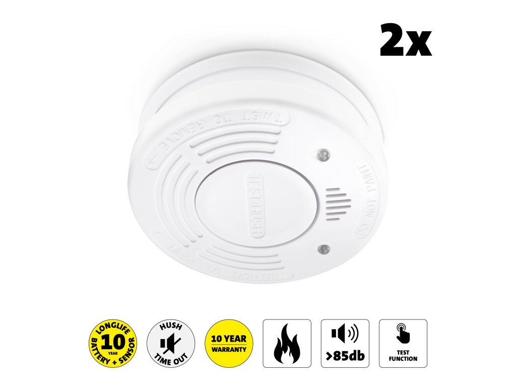 Detektor kouře s baterií a senzorem s dobou provozu 10 let 2ks Bílý