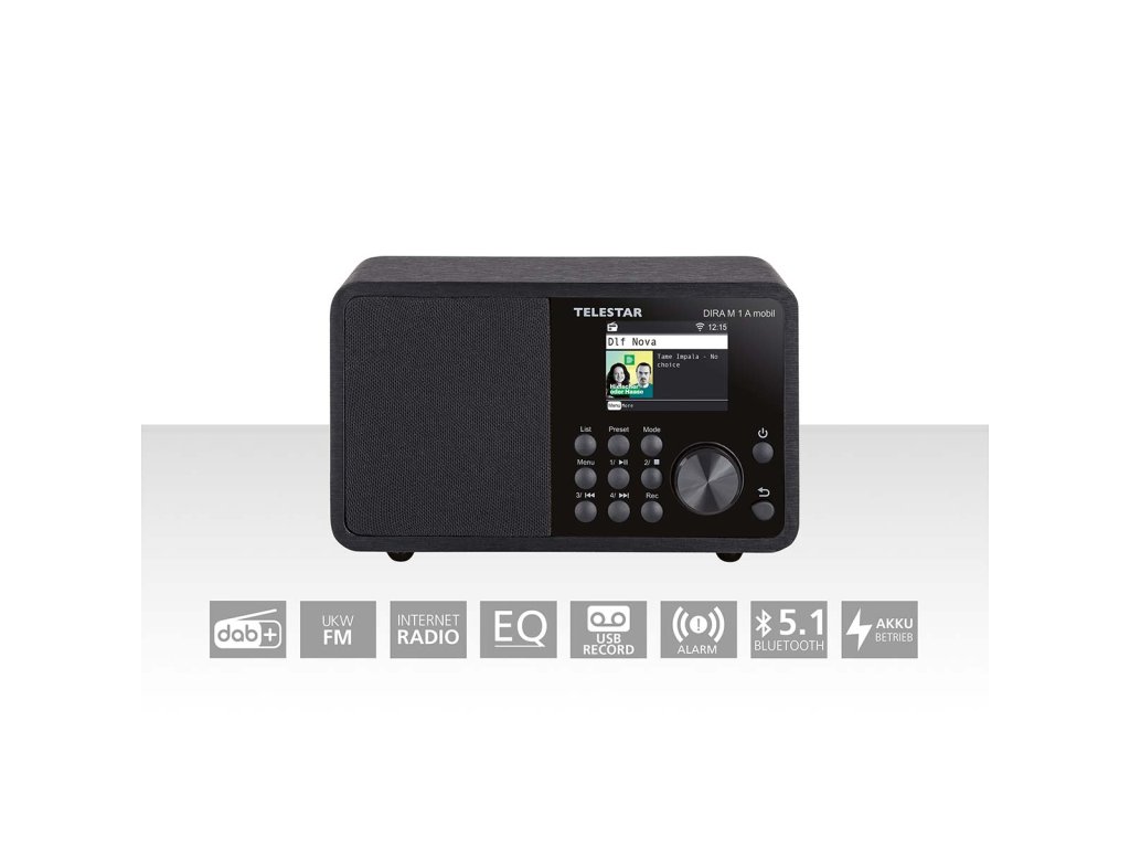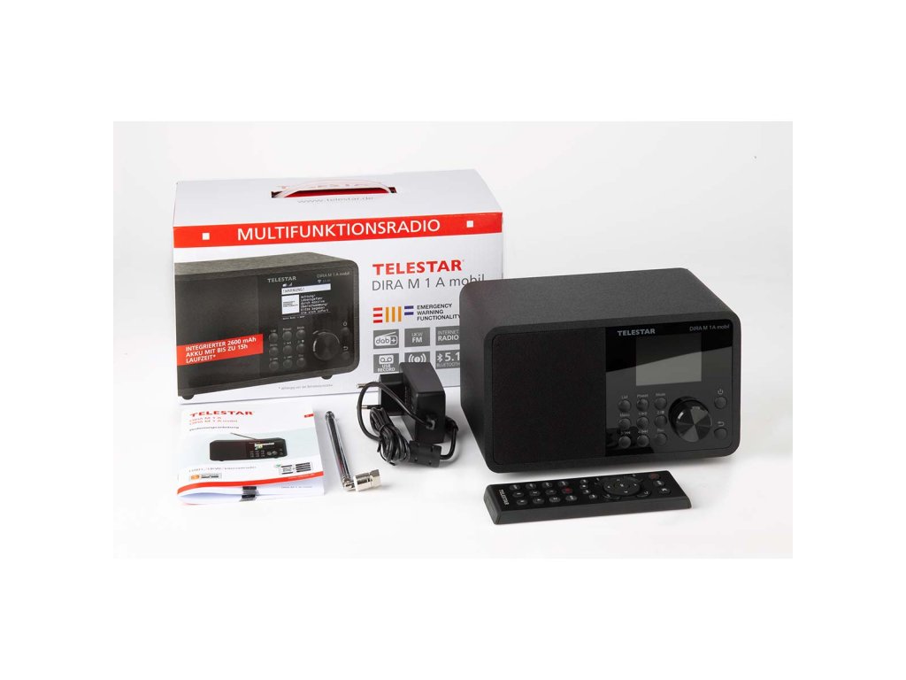 Kompaktní monofonní multifunkční rádio na baterie se solidními zvukovými vlastnostmi, velkým displejem, rozsáhlými multimediálními funkcemi USB a funkcemi EWF a Journaline. Kompaktní pouzdro mobilního radiomagnetofonu TELESTAR DIRA M 1 A obsahuje nejnovější rádiovou technologii, která umožňuje příjem digitálních rozhlasových stanic DAB+ a internetových rozhlasových stanic, stejně jako analogových rozhlasových stanic FM. Hybridní rádio zaujme solidním zvukem, který lze pomocí ekvalizéru přizpůsobit vlastním poslechovým preferencím. Barevný TFT displej s úhlopříčkou 2,4'' (6,1 cm) zobrazuje užitečné informace o pozadí v ostrých detailech. Díky funkcím UPnP, Line-In a přehrávání médií z USB lze prostřednictvím mobilního přehrávače DIRA M 1 A přehrávat hudební soubory v nejrůznějších formátech a z různých zdrojů. Rádio je vybaveno inovativní technologií EWF a Journaline. EWF je poplašný systém založený na vysílací síti DAB+, který v případě katastrofy vysílá příslušným příjemcům nouzový program a může tak zachránit lidské životy. Integrovaná baterie s kapacitou 2600 mAh umožňuje provoz rádia bez elektrické zásuvky s výdrží až 15 hodin. Užitečné doplňkové funkce, jako je budík, časovač spánku nebo zobrazení aktuálních informací o počasí, doplňují nabídku funkcí kompaktní multifunkční vysílačky TELESTAR a činí z ní jedinečný výrobek. * O společnosti EWF Zkušební provoz EWF probíhá pravidelně, a to jak na celostátní, tak na regionální úrovni. Abyste mohli prostřednictvím EWF přijímat nejen skutečná tísňová varování, ale také testovací varování, proveďte ve svém mobilním telefonu DIRA M1 A / M1 A následující nastavení: Otevřete nabídku Otevřete položku nabídky "Systém". Přejděte na podpoložku "Nastavení EWF". V části "ON/OFF" aktivujte "Alarm+Test ON". V podpoložce "Set Journaline" (Nastavení deníku) můžete také aktivovat textovou službu pro výstražná hlášení.