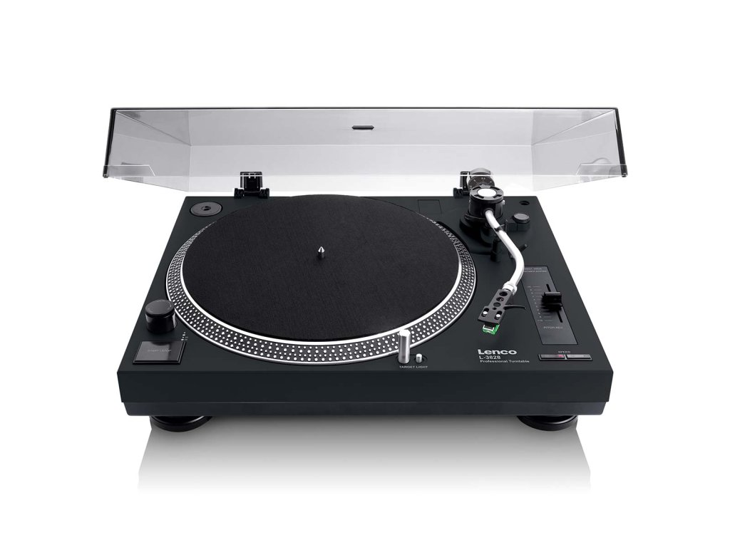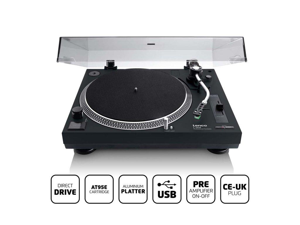 The Lenco L-3828 is a high-quality, professional direct-drive record player particularly suited for DJs. The direct-drive guarantees that the record starts immediately also called 'quick start' The record player is equipped with lighting for optimal operating convenience and a stroboscope. Easily adjust the speed of your record player with a variable pitch fader. With a built-in phono pre-amplifier, you can connect the Lenco L-3828 directly to your mixer or stereo. With the Lenco L-3828, you can keep your vinyl records forever by digitizing them to your computer. You can easily convert your vinyl records to a digital album via the USB cable, this way you can always enjoy your favourite music, wherever you are. The removable plastic dust cover protects the record player against dust. With an attractive and timeless look, the Lenco L-3828 blends into any interior while allowing you to enjoy a classic sound. The Lenco L-3828 is available in black and comes with an AT95 cartridge.
