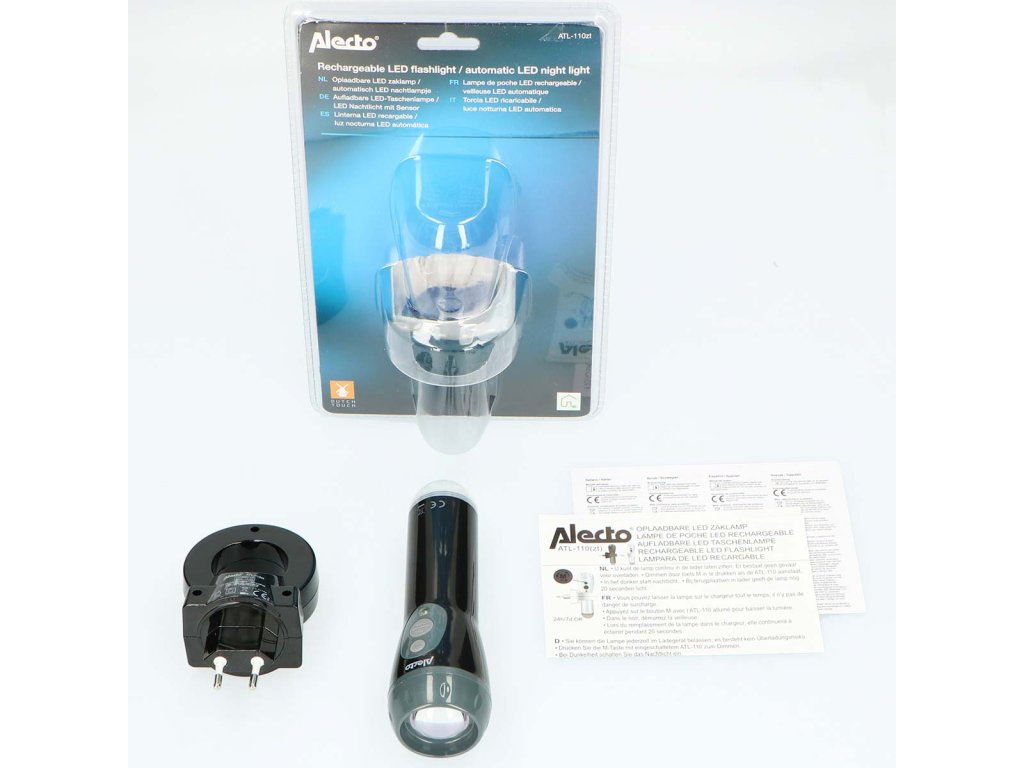 Alecto ATL-110ZT Dobíjecí LED svítilna, automatické noční světlo s dobíjecím světelným senzorem - vždy připraveno k použití. K dispozici také v bílé barvě.