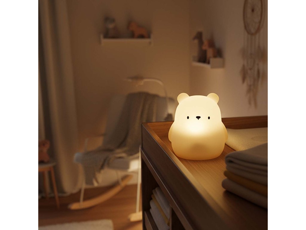 Nabíjecí noční LED světlo Alecto v roztomilém designu medvídka vnese do dětského pokoje pohodlí a styl. Toto noční světlo je vyrobeno z měkkého a pružného silikonu, je bezpečné na dotek a ideální pro malé ručičky. Vytváří uklidňující atmosféru, která pomáhá dětem s jistotou usínat. Toto noční světlo nabízí možnosti teplého i jasného bílého světla, takže si můžete vybrat ideální jas pro uklidnění před spaním nebo v noci. Režim změny barev RGB navíc zavádí zábavné a uklidňující barvy, které jsou ideální pro vyprávění příběhů, relaxaci nebo přidání hravého akcentu do místnosti. Pomocí jednoduché dotykové funkce mohou děti snadno přepínat mezi režimy světla nebo samy aktivovat barevnou smyčku. Jemné osvětlení zajišťuje viditelnost během noci, aniž by rušilo spánek. Díky energeticky úsporné dobíjecí baterii poskytuje světlo po plném nabití až 18 hodin provozu v pohotovostním režimu - ideální pro několik nocí bez nutnosti zapojení do sítě. Díky vestavěnému nabíjecímu portu USB-C je dobíjení rychlé a pohodlné. Kompletní nabíjecí cyklus trvá pouhé 3 až 3,5 hodiny, takže noční světlo je během okamžiku opět připraveno k použití. Dobíjecí noční LED světlo Alecto je praktickým a okouzlujícím doplňkem každého dětského pokoje nebo ložnice. Je navrženo tak, aby poskytovalo pohodlí, bezpečnost a klidné prostředí pro spánek, a je tak příjemným společníkem pro noční rutinu.