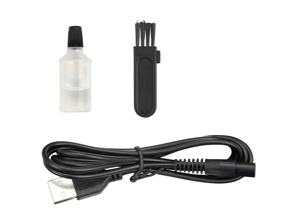 • Přiložené příslušenství: • Vhodný k přenášení: 4 distanční hřebeny (1/3/5/7 mm), malý čisticí kartáček, olej pro péči o zastřihovač, nabíjecí kabel USB
