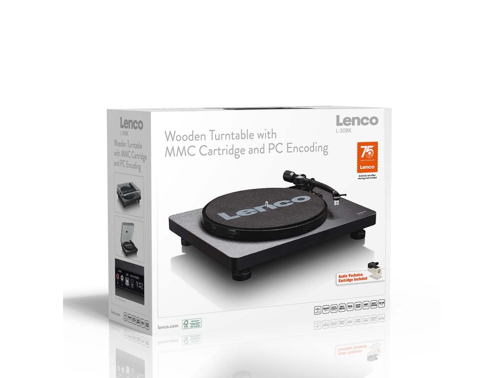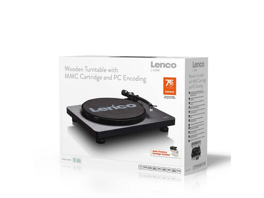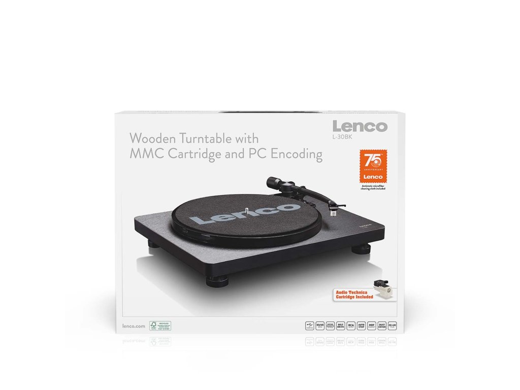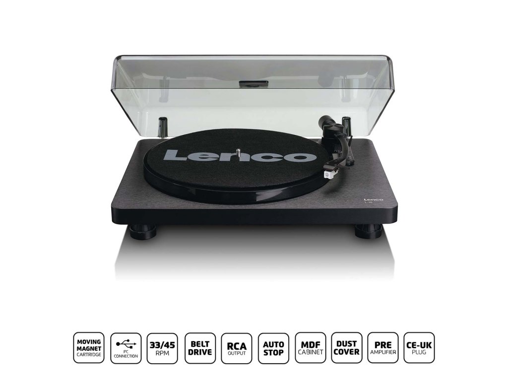 Lenco L-30 je gramofon, který se postará o fantastický zvuk vašich oblíbených desek. Díky svému módnímu designu a moderním technologiím je tento gramofon ideální pro všechny hudební nadšence. Lenco L-30 je k dispozici ve dvou variantách: černé a dřevěné. Chcete svým dětem pouštět oblíbené zvuky z minulosti? Přehrávač Lenco L-30 produkuje vynikající kvalitní zvuk a vaše děti budou ohromeny. Ovládání gramofonu je tak snadné, že je můžete nechat, aby si desku přehrály i samy. Lenco L-30 je vybaven kazetou s pohyblivým magnetem (MMC), automatickým zastavením, řemínkovým pohonem a vestavěným předzesilovačem. Desky můžete přehrávat dvěma rychlostmi: 33 otáček za minutu a 45 otáček za minutu. Odnímatelný plastový kryt chrání gramofon před prachem. S přibývajícími lety vaše desky stárnou a křehnou. Abyste zabránili navždy ztrátě své oblíbené hudby, můžete svou cennou sbírku vinylů digitalizovat pomocí přehrávače Lenco L-30. Připojte gramofon k počítači prostřednictvím portu USB a snadno převeďte své vinyly do digitálního zvukového souboru. Ať už půjdete kamkoli, budete mít svou oblíbenou hudbu vždy s sebou.