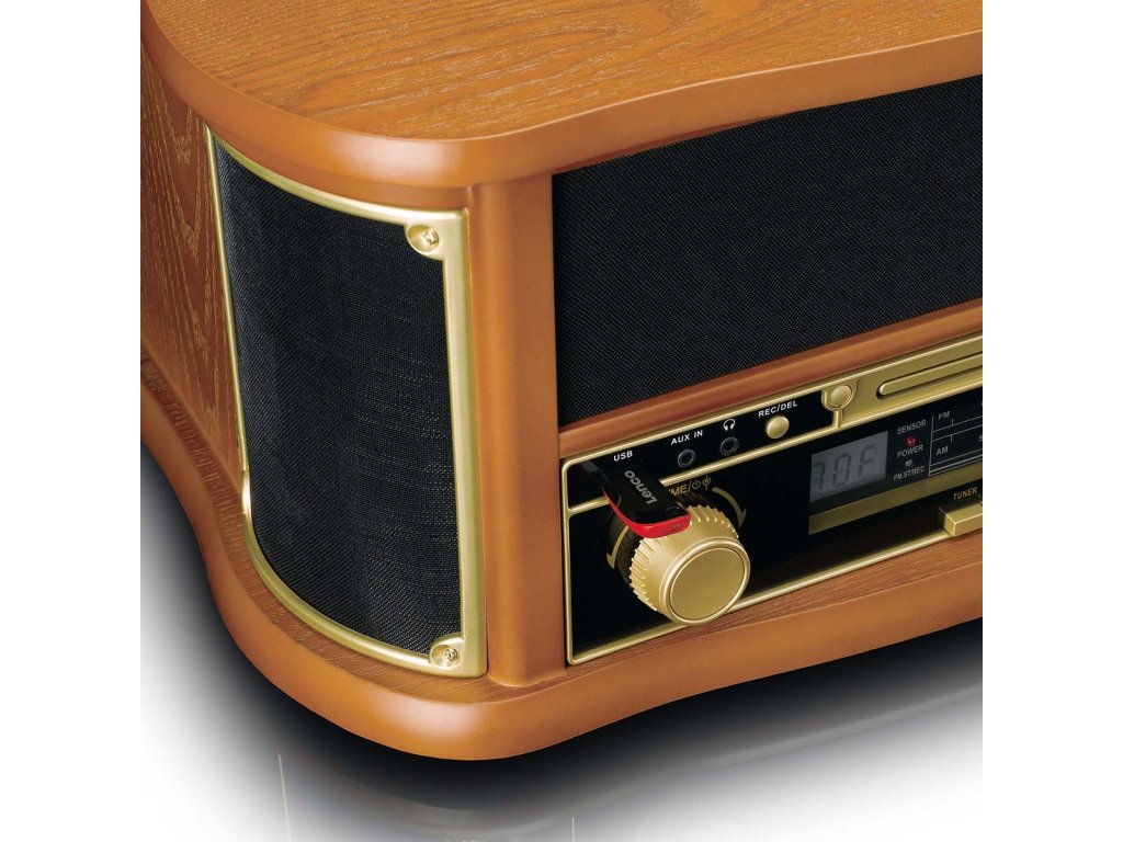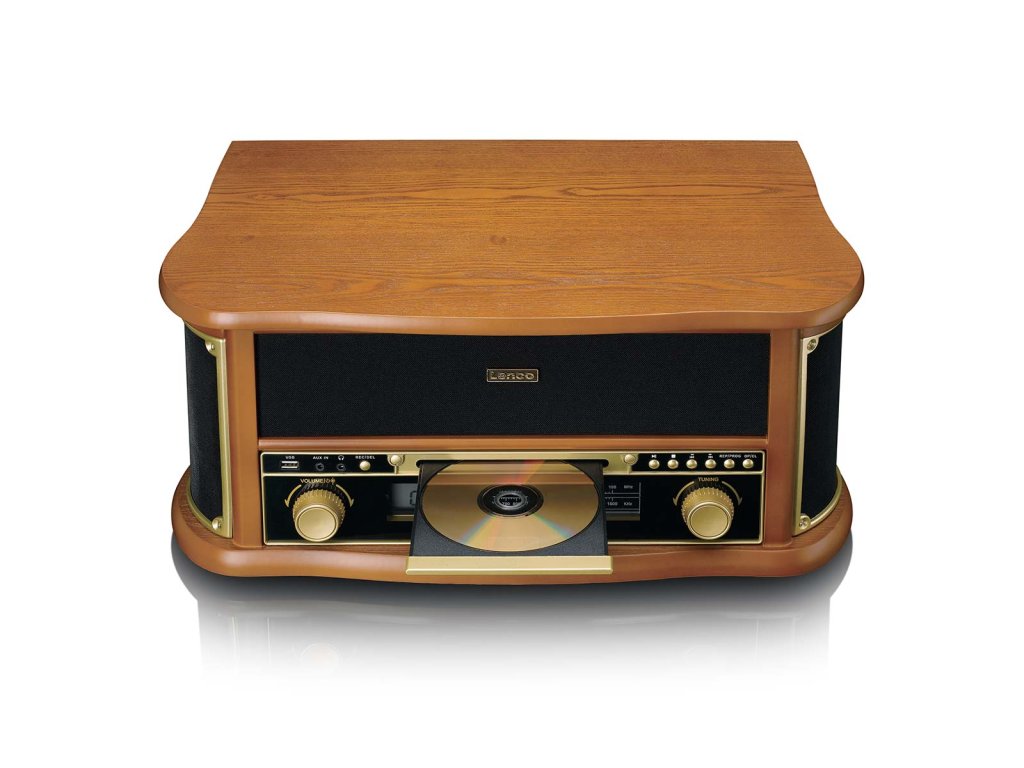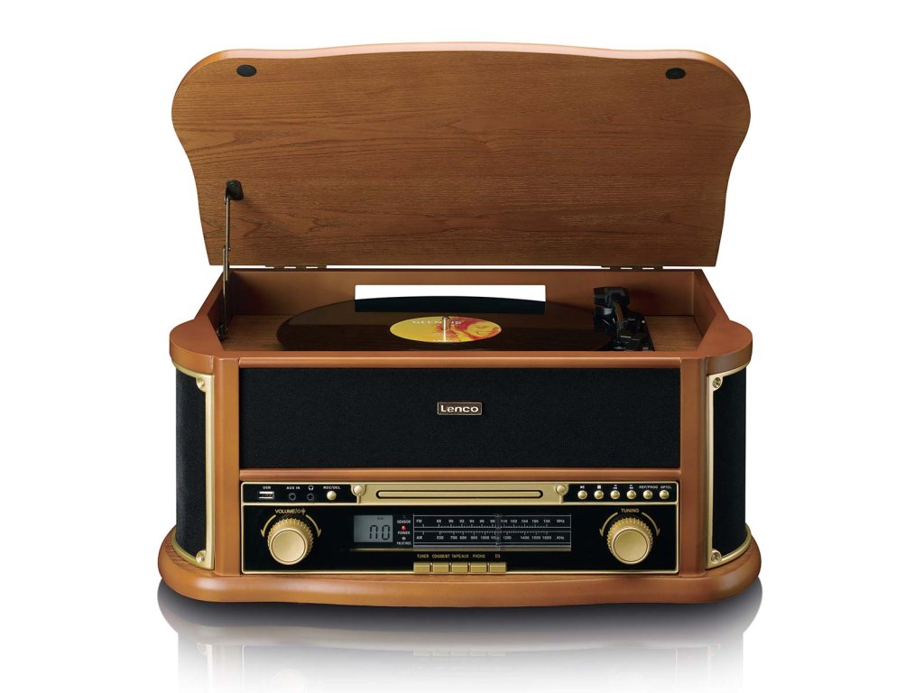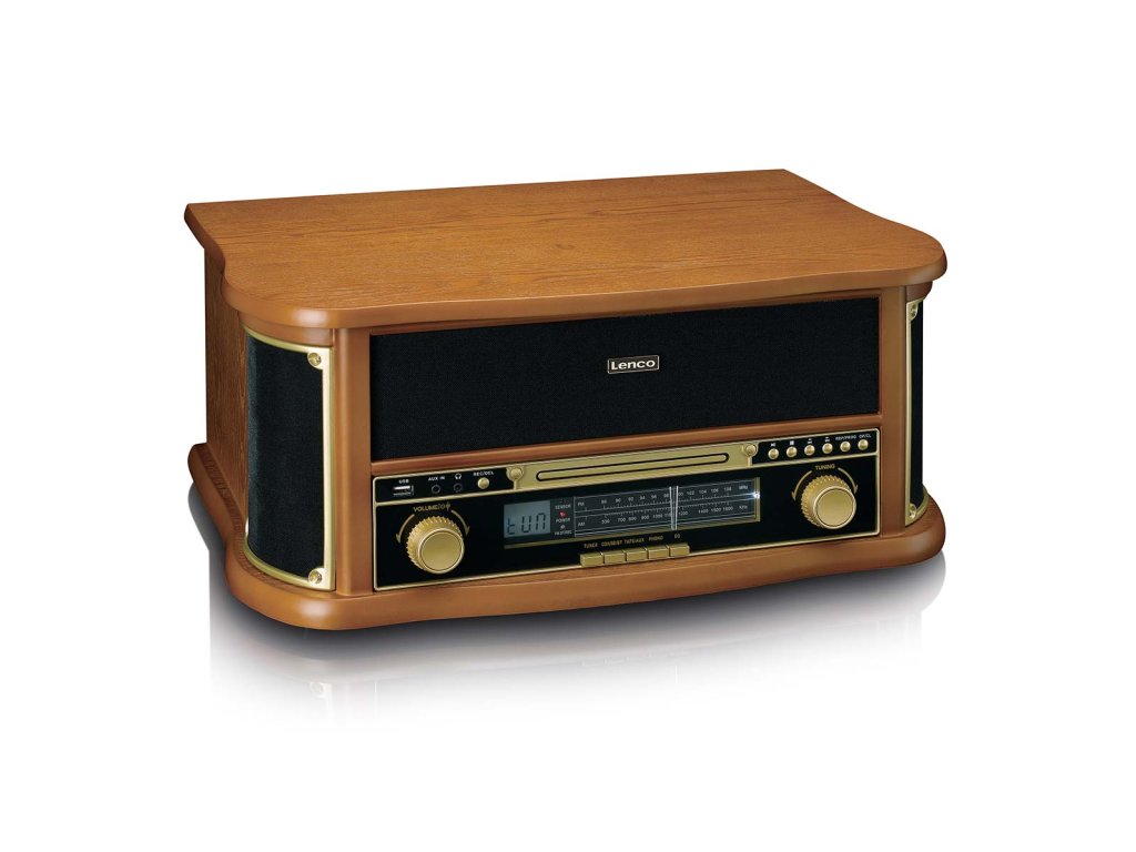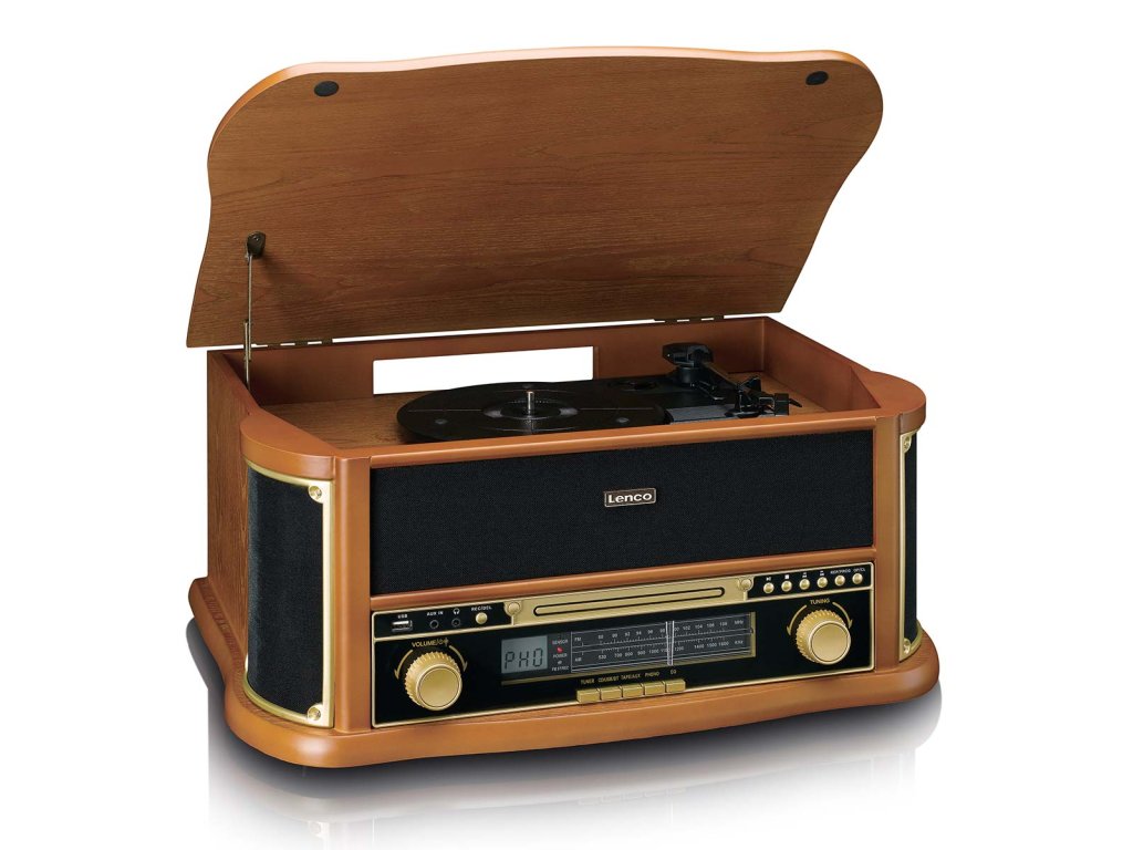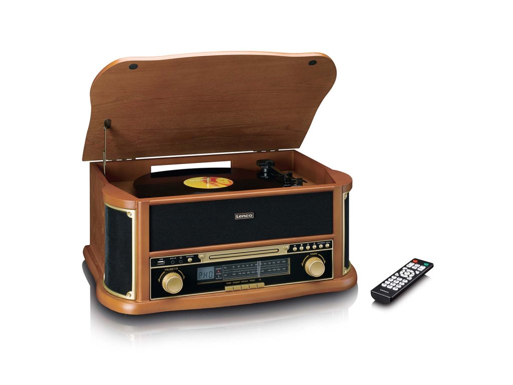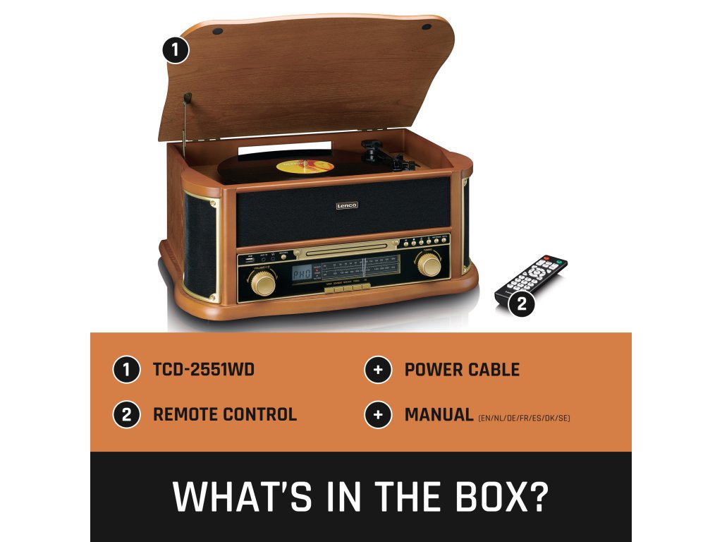 Classic Phono (by Lenco) TCD-2551WD je multifunkční hudební systém "vše v jednom" s úžasným retro designem, který vylepší každý interiér. TCD-2551WD se vyznačuje vestavěným gramofonem s řemenovým pohonem, ale nabízí toho mnohem více. Dřevěný retro gramofon, který bez námahy kombinuje klasické funkce s moderními možnostmi přehrávání, je vybaven příjmem Bluetooth®, rádiem AM/FM, vestavěným přehrávačem CD a kazetovým přehrávačem. Poskytuje tak kompletní zážitek z poslechu s dokonalou rovnováhou mezi nostalgickým kouzlem vintage estetiky a moderní funkčností. TCD-2551WD má kryt z MDF a pro větší pohodlí se dodává s dálkovým ovládáním.