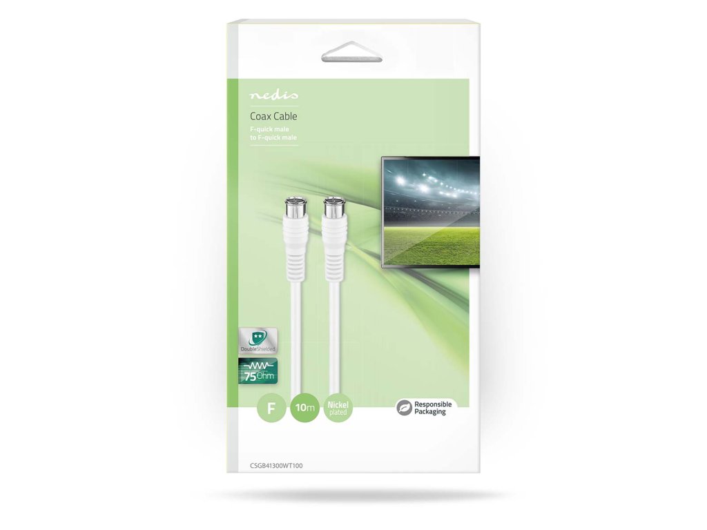 Tento F anténní kabel je vhodný k připojení zařízení, jako jsou satelitní antény, k televizoru nebo dekodéru.