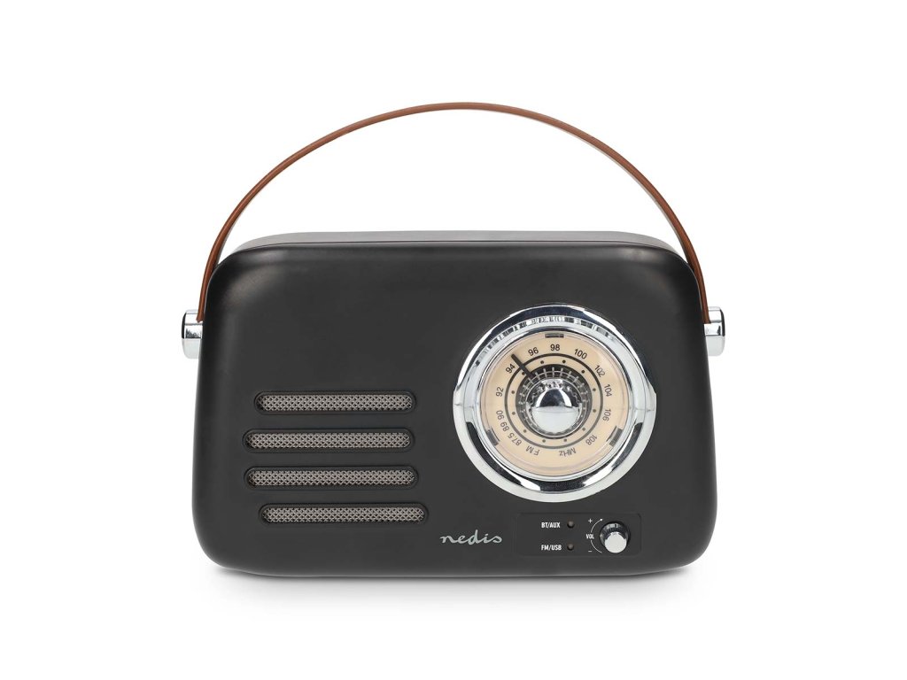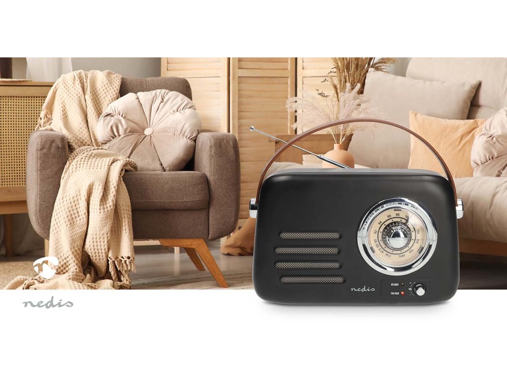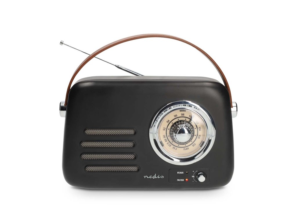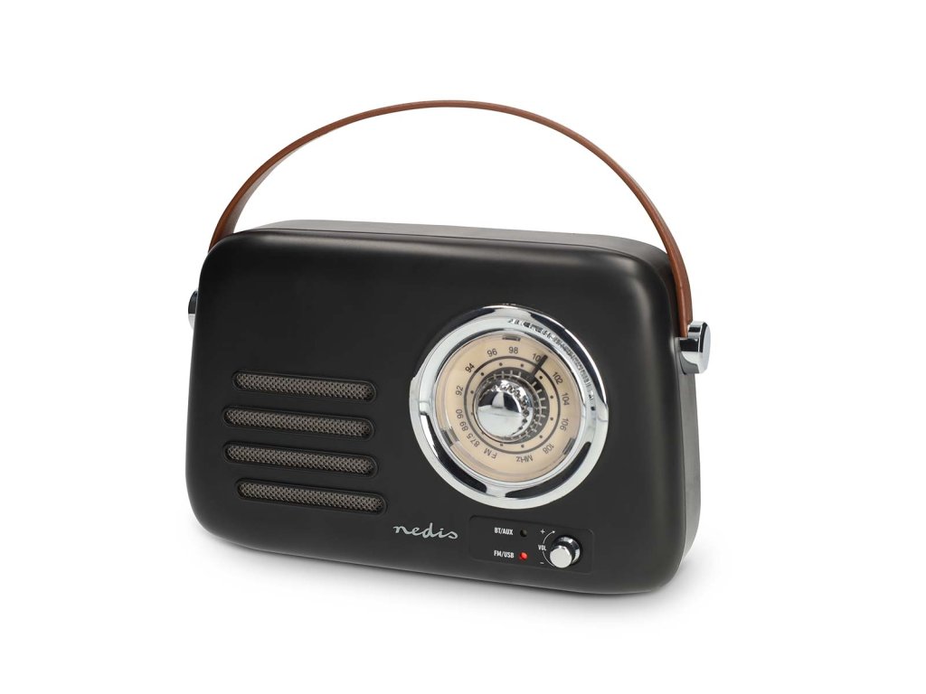 Zažijte dokonalou kombinaci nostalgie a moderní technologie s rádiem Nedis Retro FM. Toto kompaktní a přenosné rádio s nadčasovým retro vzhledem a odolnou PU rukojetí je ideální pro poslech oblíbených melodií kdekoli. Díky připojení Bluetooth® můžete snadno bezdrátově streamovat hudbu z chytrého telefonu nebo tabletu. Velká stupnice voliče zajišťuje jednoduché a přesné ladění FM, zatímco nastavitelná teleskopická anténa zaručuje optimální příjem signálu. Pro hudební nadšence je určen subwoofer umístěný na zadní straně, který přináší vylepšené basy a obohatí tak váš zážitek z poslechu. Rádio Nedis Retro FM je stvořeno pro pohodlí. Jeho integrovaná Li-Ion baterie s kapacitou 1500 mAh zajišťuje dlouhou dobu přehrávání a díky nabíjecímu portu USB-C je dobíjení snadné. Další všestrannost přináší 3,5mm vstup AUX a port USB, které umožňují připojit širokou škálu zařízení. Ať už doma, na zahradě nebo na cestách, Nedis Retro FM rádio v sobě spojuje klasický design, praktickou přenosnost a moderní zvukové funkce - je tedy nezbytným doplňkem pro milovníky hudby, kteří si cení stylu i kvality zvuku.