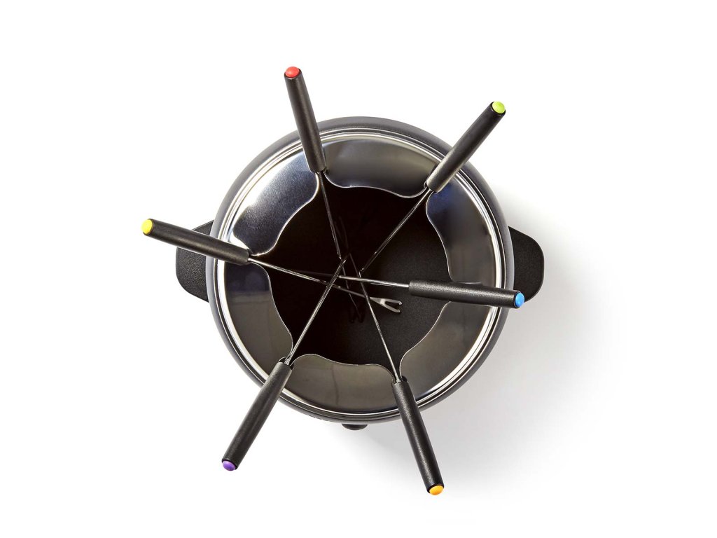 Sada se dodává se šesti barevně odlišenými vidličkami, díky nimž si každý host během jídla snadno udrží přehled o svých vidličkách. Tento malý, ale promyšlený detail pomáhá předcházet záměnám u stolu a dodává zážitku z fondue praktický nádech.