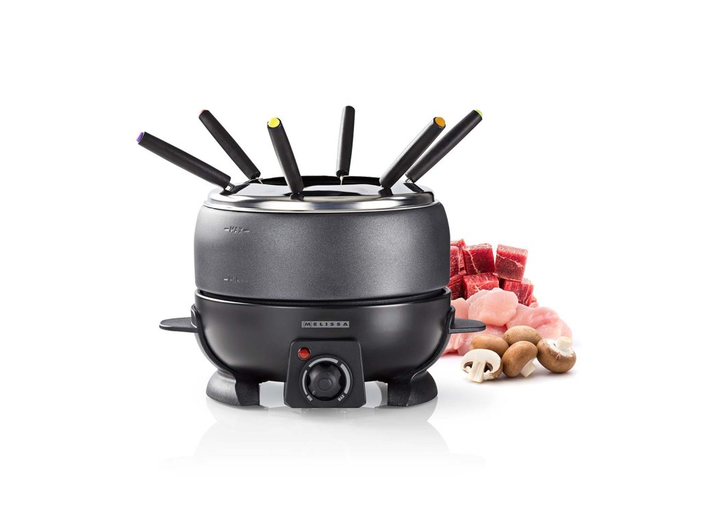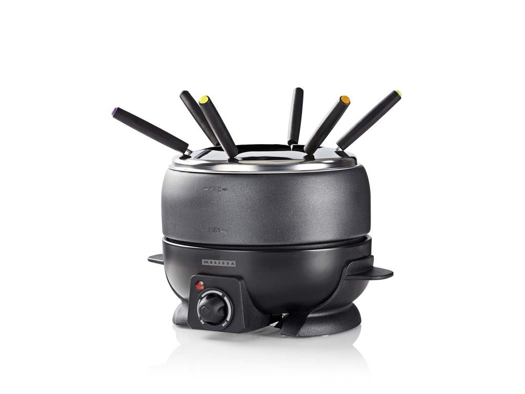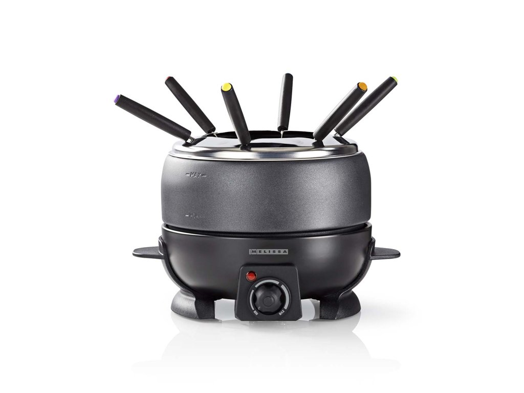 Elektrická sada na fondue Melissa nabízí zábavný, snadný a stylový způsob, jak si vychutnat fondue s přáteli nebo rodinou. Tato sada je navržena pro pohodlí a komfort, je ideální až pro šest osob a přináší na váš stůl hřejivý zážitek ze společného stolování - ať už namáčíte chléb do roztaveného sýra, vychutnáváte si ovoce v čokoládě nebo vaříte maso v oleji či vývaru.