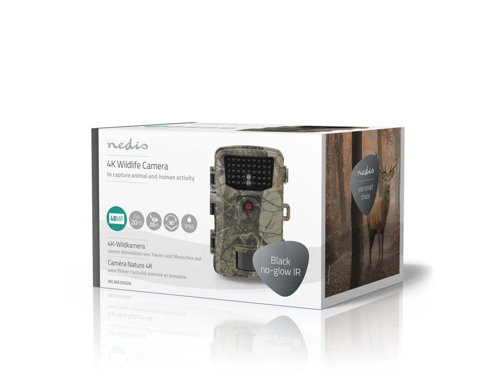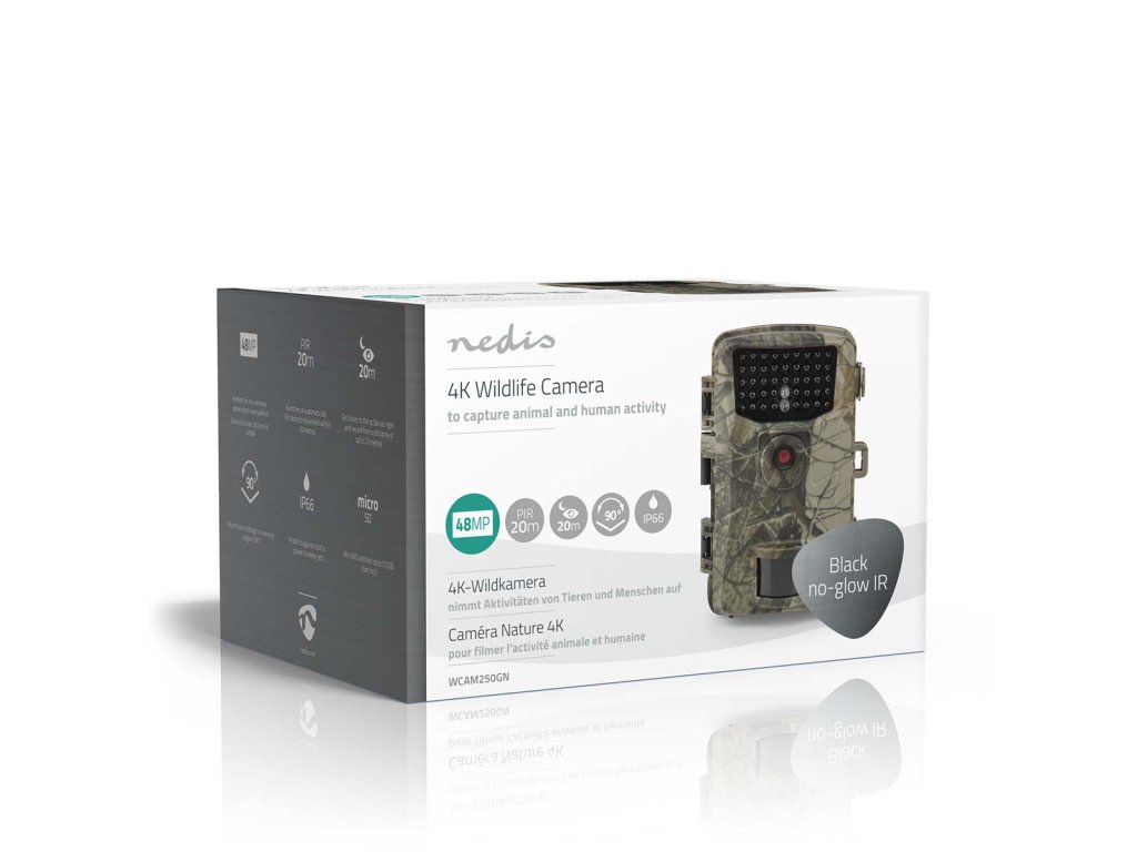 S touto Nedis 4K fotopastí Vám již neunikne ani chvilka přírodní či lidské aktivity. Jednoduše ji připevněte ke stromu nebo sloupu pomocí přiloženého montážního pásku. Fotoaparát pořizuje velkolepé záběry a dokáže ukládat hodiny stád jelenů pobíhajících lesem nebo záběr medvěda či vlka na průzkumu. Tento fotopast Vám zajistí úchvatné snímky přírody v rozlišení 48 MP a 4K video během dne i noci. S dobou spuštění pouhých 0,3 sekundy se aktivuje velmi rychle, takže nikdy nepřijdete o žádnou akci. Vypíná se automaticky, což zaručuje dlouhou výdrž baterie a pohotovostní dobu. Fotopast je kompaktní, vybavena maskovacím vzorem a krytím IP66, aby byla chráněna před prachem a vodou. To vše dohromady z ní dělá vhodného ochránce Vašeho terénu. Díky 2,3palcovému displeji lze fotopast snadno nastavit a okamžitě si zobrazit pořízené záznamy. Spotřebitel musí dodržovat platné zákony a předpisy a být si vědom toho, že tyto mohou omezovat vytváření a používání snímků z kamery