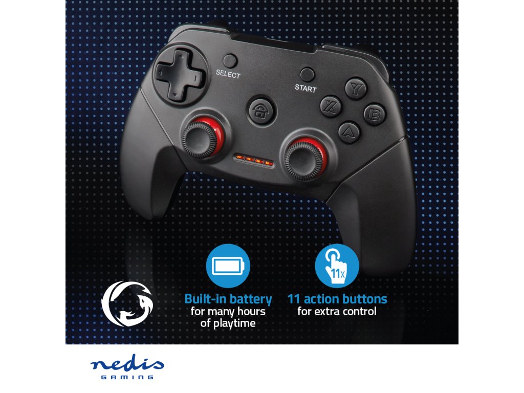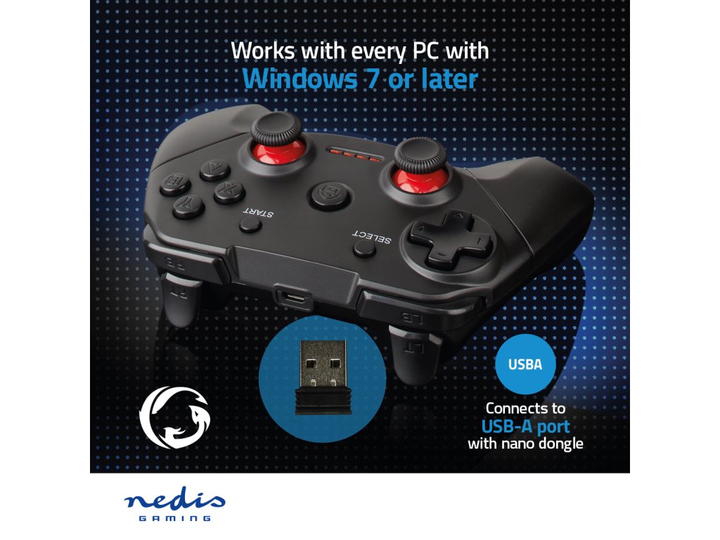Tato Nedis USB herní podložka zajišťuje během her dokonalé efekty, protože při každém nárazu, výstřelu či úderu vibruje. Krásné provedení ergonomického ovladače se snadno přizpůsobí vaší ruce a je tedy ideální pro dlouhodobé hraní. Ovladač vytvořený speciálně pro hráče, kteří vyžadují pohodlí pro dlouhé hraní, obsahuje akční tlačítka, se kterými budete mít všechny herní funkce vždy na dosah ruky. Bezdrátová technologie Vám dává při hraní oblíbených her svobodu pohybu.
