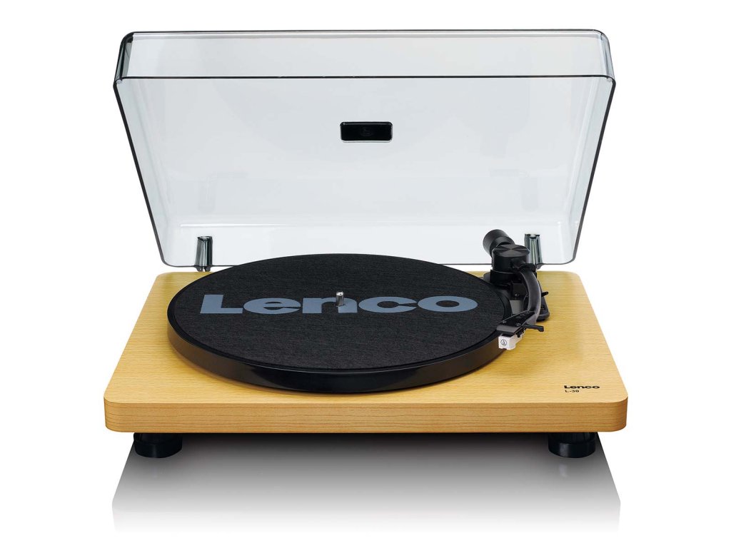 Lenco L-30 je gramofon, který se postará o fantastický zvuk vašich oblíbených desek. Díky svému módnímu designu a moderním technologiím je tento gramofon ideální pro všechny hudební nadšence. Lenco L-30 je k dispozici ve dvou variantách: černé a dřevěné. Chcete svým dětem pouštět oblíbené zvuky z minulosti? Přehrávač Lenco L-30 produkuje vynikající kvalitní zvuk a vaše děti budou ohromeny. Ovládání gramofonu je tak snadné, že je můžete nechat, aby si desku přehrály i samy. Lenco L-30 je vybaven kazetou s pohyblivým magnetem (MMC), automatickým zastavením, řemínkovým pohonem a vestavěným předzesilovačem. Desky můžete přehrávat dvěma rychlostmi: 33 otáček za minutu a 45 otáček za minutu. Odnímatelný plastový kryt chrání gramofon před prachem. S přibývajícími lety vaše desky stárnou a křehnou. Abyste zabránili navždy ztrátě své oblíbené hudby, můžete svou cennou sbírku vinylů digitalizovat pomocí přehrávače Lenco L-30. Připojte gramofon k počítači prostřednictvím portu USB a snadno převeďte své vinyly do digitálního zvukového souboru. Ať už půjdete kamkoli, budete mít svou oblíbenou hudbu vždy s sebou.
