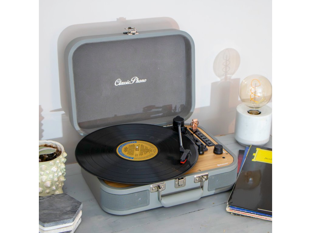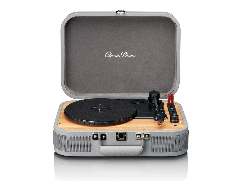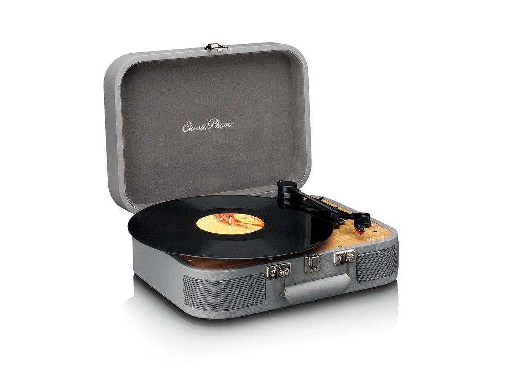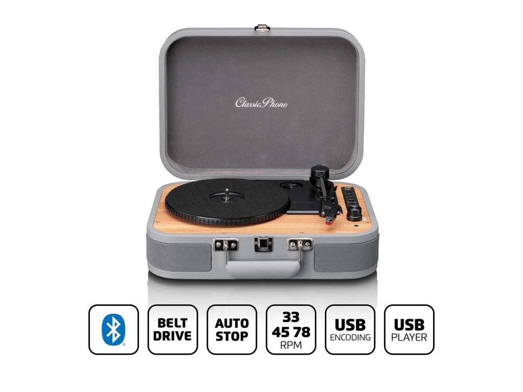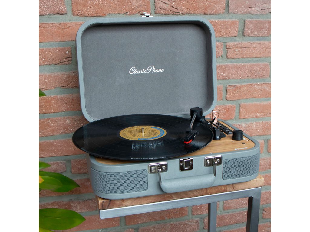 Vychutnejte si svou oblíbenou hudbu se stylovým retro gramofonem Classic Phono (by Lenco) TT-116GY s vestavěnými reproduktory. S tímto praktickým kufříkovým retro gramofonem si nejen přehrajete vinylové desky. Své oblíbené skladby můžete snadno streamovat do vestavěných reproduktorů prostřednictvím telefonu nebo tabletu. Přehrávanou hudbu je navíc možné nahrávat přímo na USB. Vše v jednom: Kufříkový gramofon s vestavěnými reproduktory Classic Phono TT-116GY je takzvaný kufříkový gramofon. Jedná se o přenosný gramofon ve tvaru kufru. Snadno se přenáší a používá. Otevřete retro kufřík a ihned můžete poslouchat svou oblíbenou hudbu na vinylu prostřednictvím integrovaných reproduktorů. Jedná se skutečně o univerzální gramofon, nepotřebujete samostatné reproduktory. Pevný kufr s rukojetí poskytuje optimální ochranu vašeho gramofonu. Přehrávání vinylů, streamování a mnoho dalšího Gramofon Classic Phono TT-116GY lze používat různými způsoby. Kromě jednoduchého přehrávání oblíbených desek můžete také streamovat své seznamy skladeb prostřednictvím chytrého telefonu. Je vybaven technologií Bluetooth 5.0, která zajišťuje rychlé připojení a bezproblémové přehrávání hudby. Gramofon s rozhraním Bluetooth můžete také připojit k hi-fi soupravě prostřednictvím vstupu AUX-IN. Pomocí výstupu RCA můžete přímo připojit svůj stereofonní systém, gramofonový předzesilovač není nutný. Připojte sluchátka a vychutnejte si nádherný zvuk tiše a nerušeně. Classic Phono by Lenco Objevte nostalgické kouzlo gramofonů Classic Phono, které jsou hrdou reprezentací více než pětasedmdesátiletých zkušeností společnosti Lenco v oblasti Hi-Fi a spotřební elektroniky. Inovace a spolehlivost, které definují společnost Lenco, najdete v hřejivém zvuku a odolném výkonu našich gramofonů Classic Phono s nadčasovým retro designem. Zažijte svou hudbu autentickým a stylovým způsobem, podpořenou osvědčenou kvalitou společnosti Lenco. Classic Phono, kde se snoubí minulost se současností.
