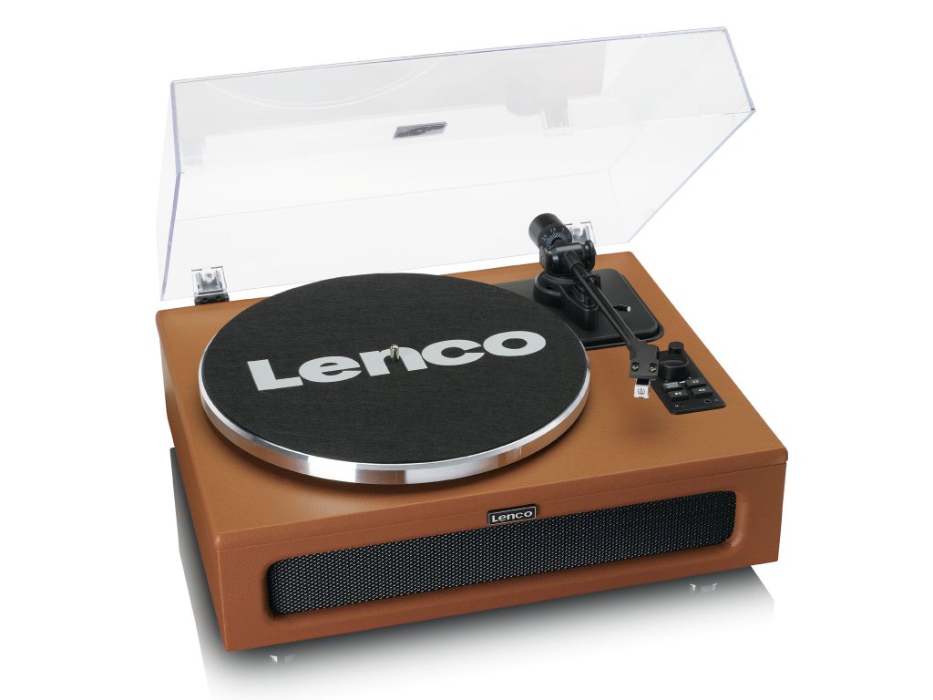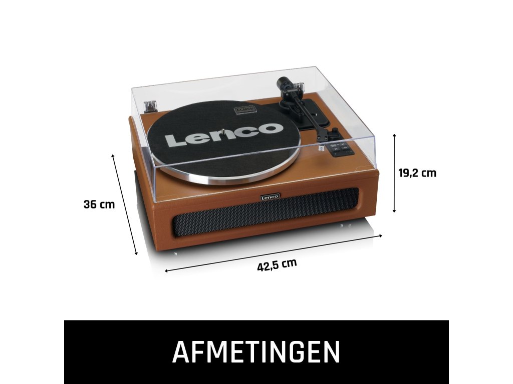 Lenco LS-430 je gramofon s vestavěnými reproduktory. Čtyři reproduktory (dva 15wattové a dva 10wattové) poskytují příjemně vyvážený zvuk. Gramofon se snadno používá. Stačí jej zapojit a okamžitě si můžete vychutnat svou oblíbenou LP desku! Případně můžete streamovat svůj seznam skladeb na chytrém telefonu nebo tabletu pomocí rozhraní Bluetooth® 5.0 a připojit se k reproduktorům přehrávače. Pokud se chcete stáhnout do ústraní a relaxovat u své oblíbené hudby, stačí připojit sluchátka. Nastavitelná rychlost umožňuje volit mezi 33 a 45 otáčkami za minutu a můžete snadno přehrávat singly a LP desky. LS-430 je gramofon s řemínkovým pohonem a je vybaven kvalitní kazetou Audio-Technica. Díky tomu je kvalita zvuku nejlepší a LP deska vydrží déle v atraktivním tvaru. Pomocí tlačítka start-stop můžete přehrávání desky kdykoli zastavit a znovu spustit tam, kde jste skončili. Lenco LS-430 je vybaven předzesilovačem, který lze zapnout a vypnout. Tento přehrávač je také vybaven funkcí pitch control, která umožňuje ručně nastavit rychlost přehrávání. Nemluvě o tónové regulaci, která umožňuje nastavit vysoké a nízké tóny. Plastový protiprachový kryt zajistí, že váš gramofon nezmizí pod vrstvou prachu. Gramofon Lenco LS-430 je povrchově upraven krásnou imitací kůže a je k dispozici v černé nebo hnědé barvě. Specifikace produktu: - Vnitřní strana s výřezem z plechu, který je součástí balení: • Bluetooth® 5.0 • 2 nastavení jmenovité rychlosti 33 a 45 otáček za minutu • Pohyblivá magnetická kazeta (MMC) AT-3600 • Řemenový pohon • Ovládání Start & Stop • Ovládání tónu a výšky tónu • 4 vestavěné reproduktory • Výstupní výkon: 40 W RMS • Předzesilovač ON-OFF • Plastový protiprachový kryt • Včetně: CE-UK síťový adaptér s více zástrčkami • Připojení: • Sada obsahuje: • Sada obsahuje: • Sada obsahuje: • Sada obsahuje: • Sada obsahuje RCA výstup, AUX vstup Co je součástí balení? • gramofon LS-430 • Jehla • Prachový kryt • Síťový adaptér CE-UK multizástrčka • Manuál NL/ EN/ DE/ FR/ ES