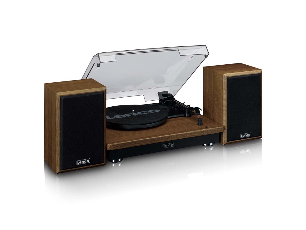 Gramofon s příjmem přes Bluetooth® a dvěma dřevěnými reproduktory