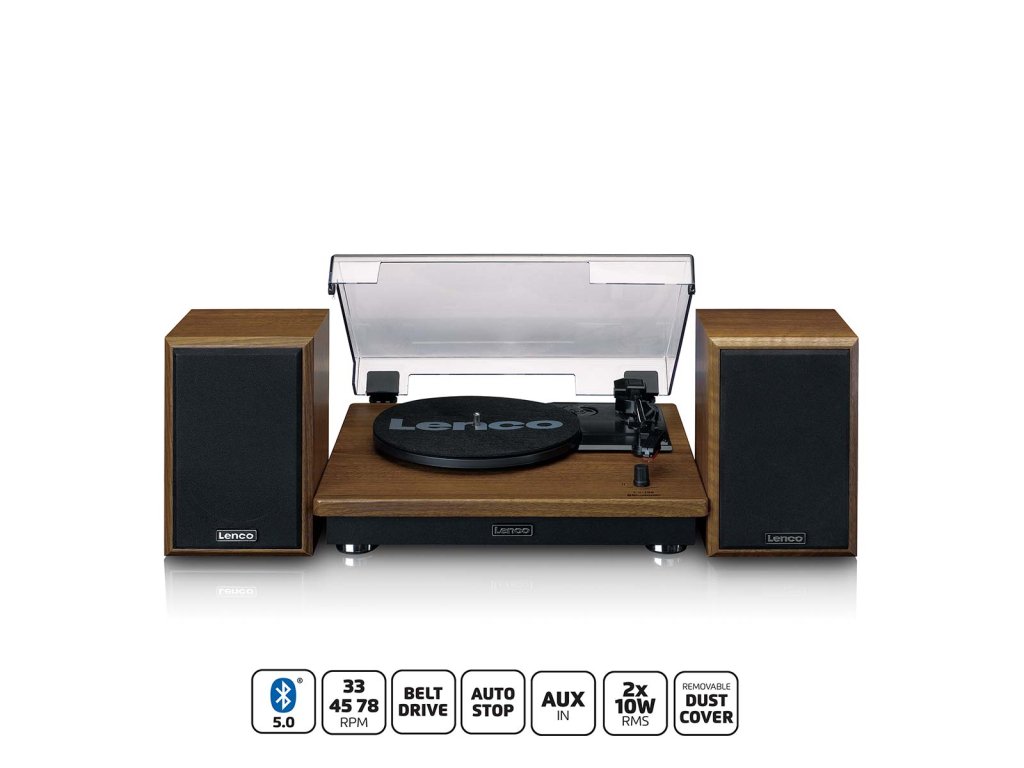 Lenco LS-100 je všestranný přehrávač desek a reproduktorů, který kombinuje klasickou přitažlivost přehrávání vinylů s moderní konektivitou. Tento model je určen pro širokou spotřebitelskou veřejnost a nabízí jak vysoce kvalitní zvuk, tak snadné použití, což z něj činí atraktivní doplněk jakéhokoli sortimentu. Kompletní stereofonní sada Model LS-100 se dodává se dvěma samostatnými reproduktory, z nichž každý poskytuje výstupní výkon 10 W RMS. To zajišťuje čistý stereofonní zvuk a flexibilní možnosti umístění pro lepší zážitek z poslechu. Více možností přehrávání Díky podpoře 33, 45 a 78 otáček za minutu dokáže LS-100 přehrávat prakticky všechny formáty desek. Jeho systém řemínkového pohonu snižuje nežádoucí vibrace, zatímco funkce automatického zastavení pomáhá prodloužit životnost vinylu i stylusu. Moderní konektivita Kromě vinylů podporuje LS-100 také streamování přes Bluetooth® 5.3, což uživatelům umožňuje bezdrátové přehrávání hudby z chytrých telefonů nebo tabletů. Vstup AUX nabízí další kompatibilitu s externími zdroji zvuku, což zajišťuje širokou využitelnost pro dnešní spotřebitele. Odolný a stylový design Model LS-100 je zkonstruován s pouzdrem z MDF a vybaven keramickou stereofonní kazetou, která kombinuje odolnost se spolehlivým výkonem. Přiložený plastový protiprachový kryt chrání gramofon, když se nepoužívá. Díky modernímu černému provedení je vhodný do široké škály interiérů.