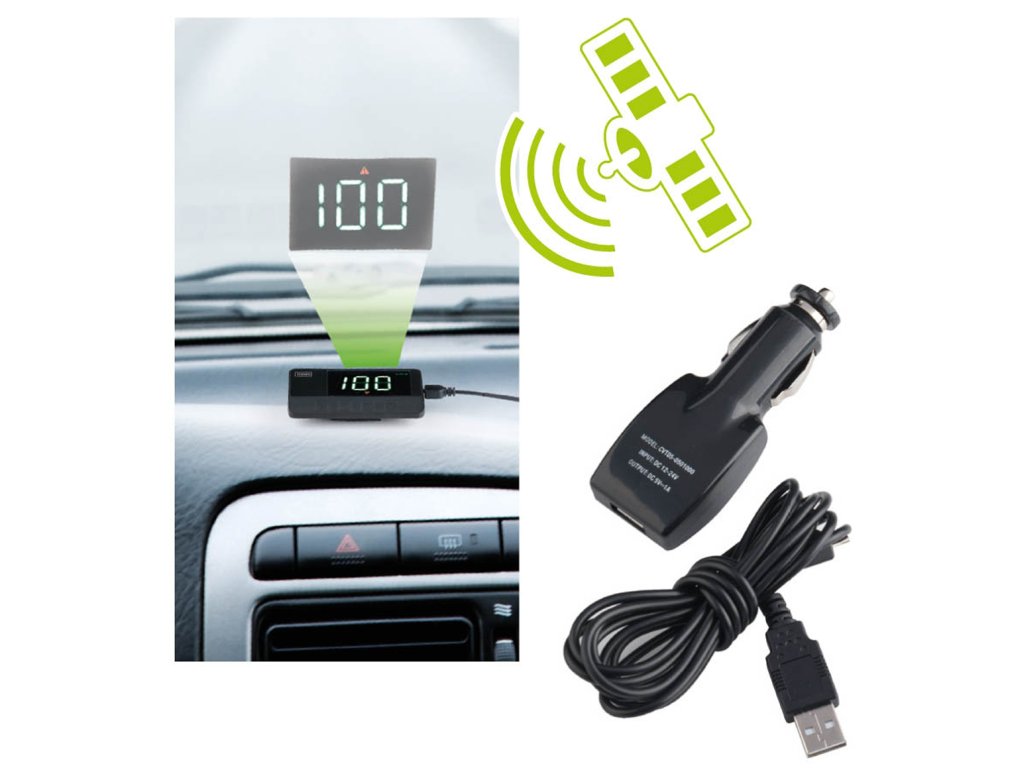 Pomocí tohoto Head Up Display HUD můžete promítat rychlost vozu přímo na čelní sklo pomocí signálů GPS. Díky tomu vás již nebude rozptylovat pohled na tachometr vozu a vy se budete moci soustředit a dívat se stále před sebe. Při překročení naprogramované rychlosti se vám také zobrazí varování. Instalace je snadná díky dodanému 12voltovému adaptéru. Rychlost je promítána na fólii, která je přiložena na čelní sklo.