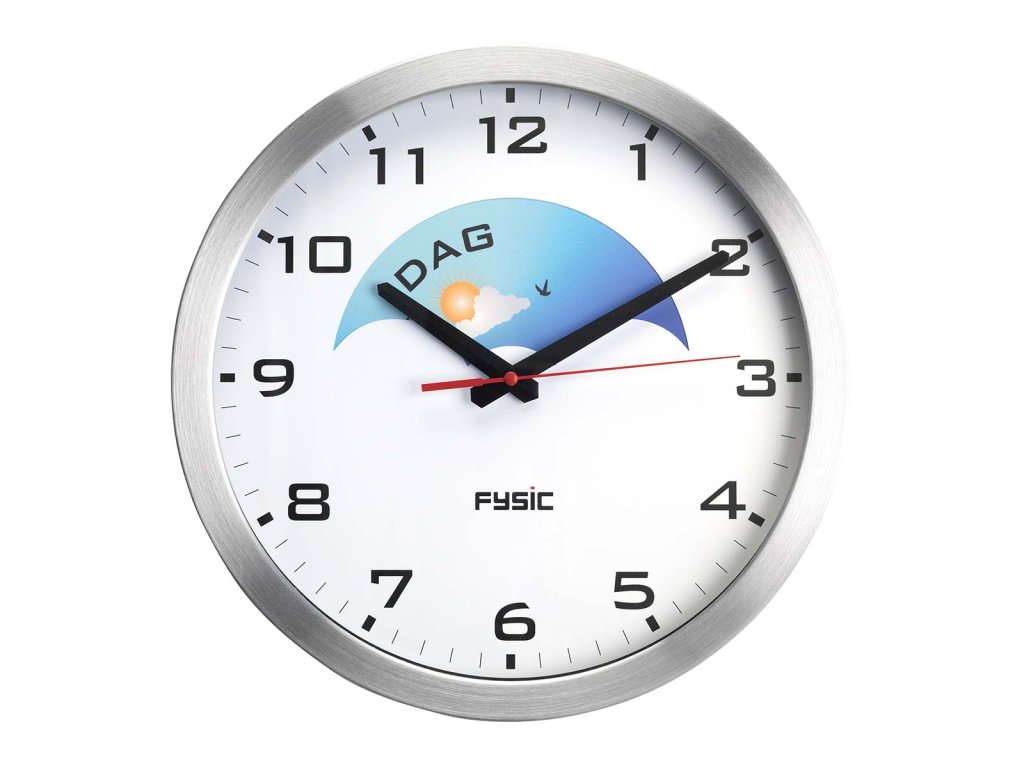 Hledáte analogové hodiny vhodné pro osoby s demencí? Hodiny Fysic FK150 jsou speciálně navrženy pro osoby s poruchami paměti, demencí nebo Alzheimerovou chorobou. Hodiny mají mimořádně velký a přehledný ciferník, který je snadno čitelný. Hodiny pro osoby s demencí jasně ukazují rozdíl mezi dnem a nocí zobrazením různých obrázků. Ráno hodiny zobrazují ptáky a vycházející slunce, zatímco večer se objevují hvězdy a měsíc. Díky tomu je okamžitě jasné, která část dne právě nastala. Hodiny Fysic FK150 mají hliníkový kryt.