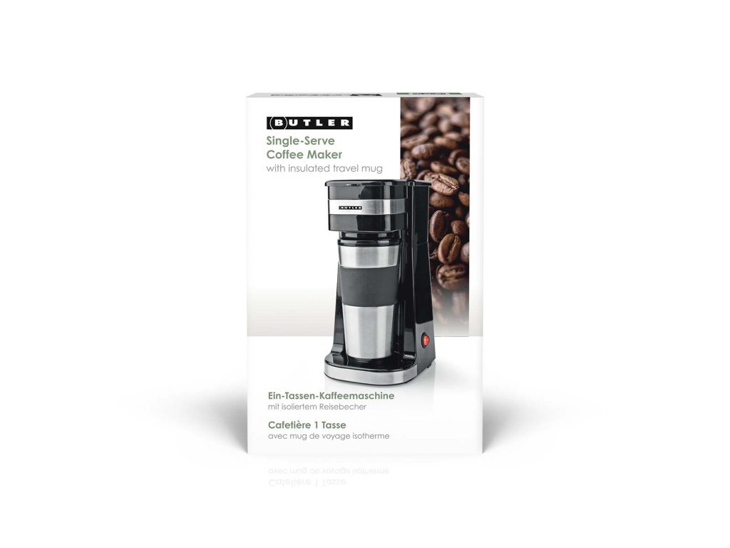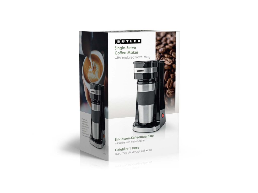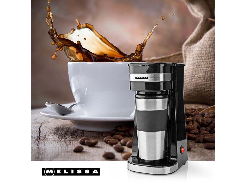 Jednorázový kávovar | 0,4 l | 750 W | Izolovaný cestovní hrnek | Automatické vypnutí | Černá barva