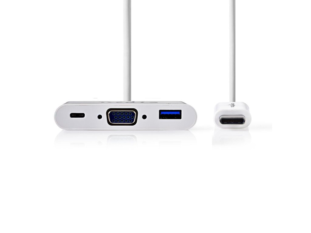 Kabel Adaptéru USB Typ-C | Typ-C Zástrčka - A Zásuvka / Typ-C Zásuvka / VGA Zásuvka | 0,2 m | Bílá barva