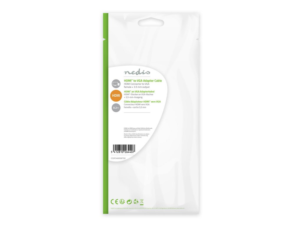 Kabel HDMI – VGA | HDMI Konektor - VGA Zásuvka | 0,2 m | Bílá barva