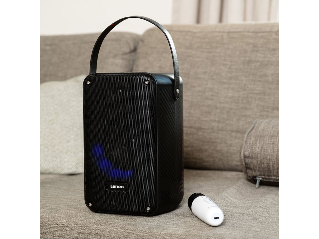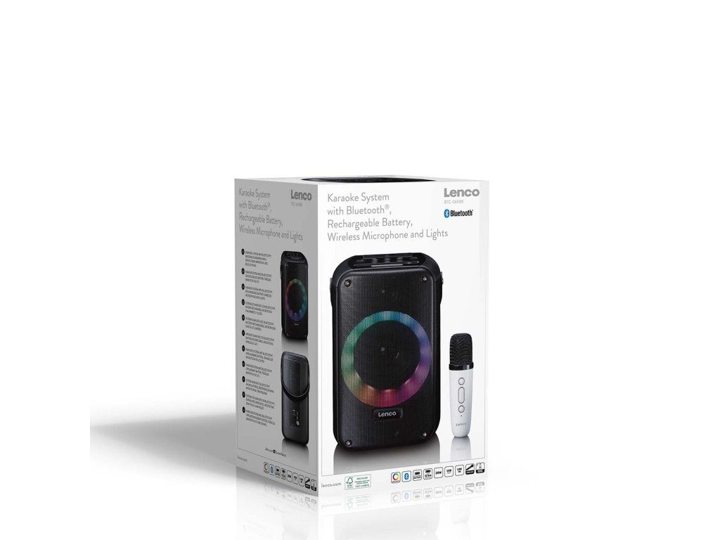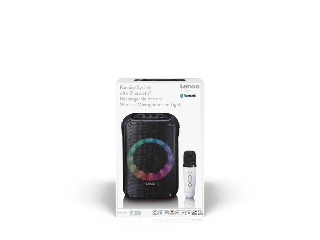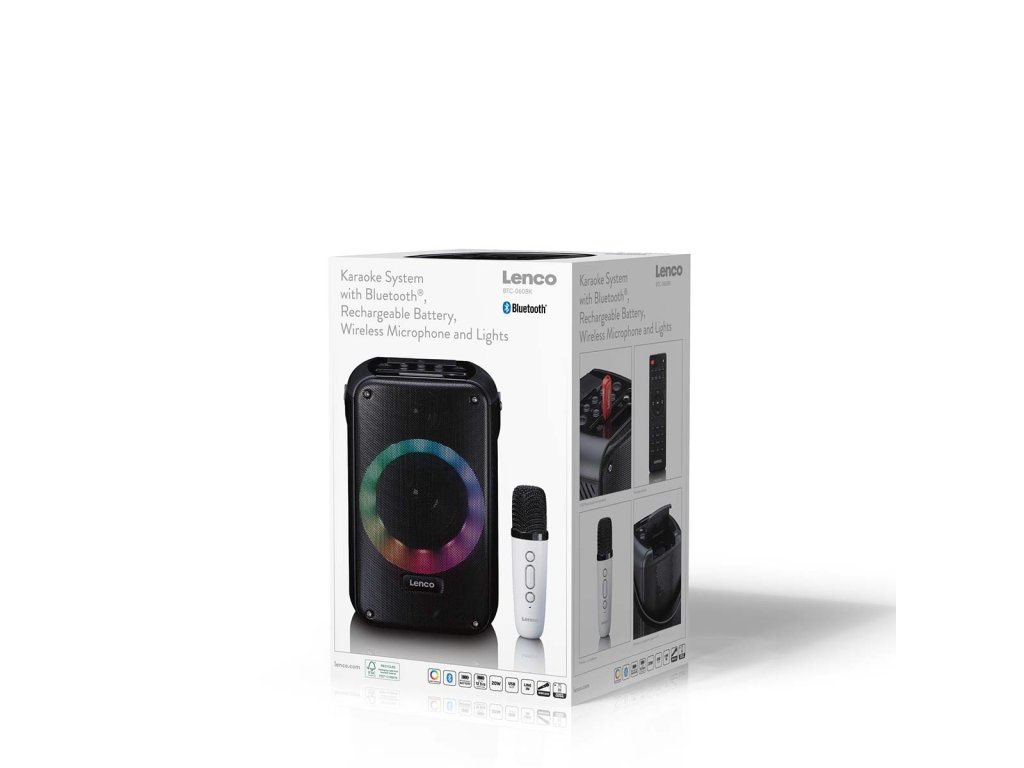Se sadou Lenco BTC-060BK získáte kompletní karaoke set vybavený technologií Bluetooth®, dobíjecí baterií, bezdrátovým dobíjecím karaoke mikrofonem, diskotékovým LED osvětlením a dálkovým ovladačem se zvukovými efekty a měničem hlasu. Těžko si to dokážeme představit, ale nejste snad fanoušky karaoke? BTC-060BK je pro vás stále tou správnou volbou. Mikrofon pro karaoke pohodlně uložíte do reproduktoru Bluetooth. Díky přenosnému provedení a hmotnosti pouhých 1,42 kg si reproduktor můžete vzít kamkoli s sebou. Díky vestavěné dobíjecí baterii s kapacitou 2400 mAh si můžete užívat až 12 hodin nepřetržité zábavy. S reproduktorem Lenco BTC-060BK máte párty doslova ve svých rukou! Pojďme tuhle (karaoke) párty rozjet!